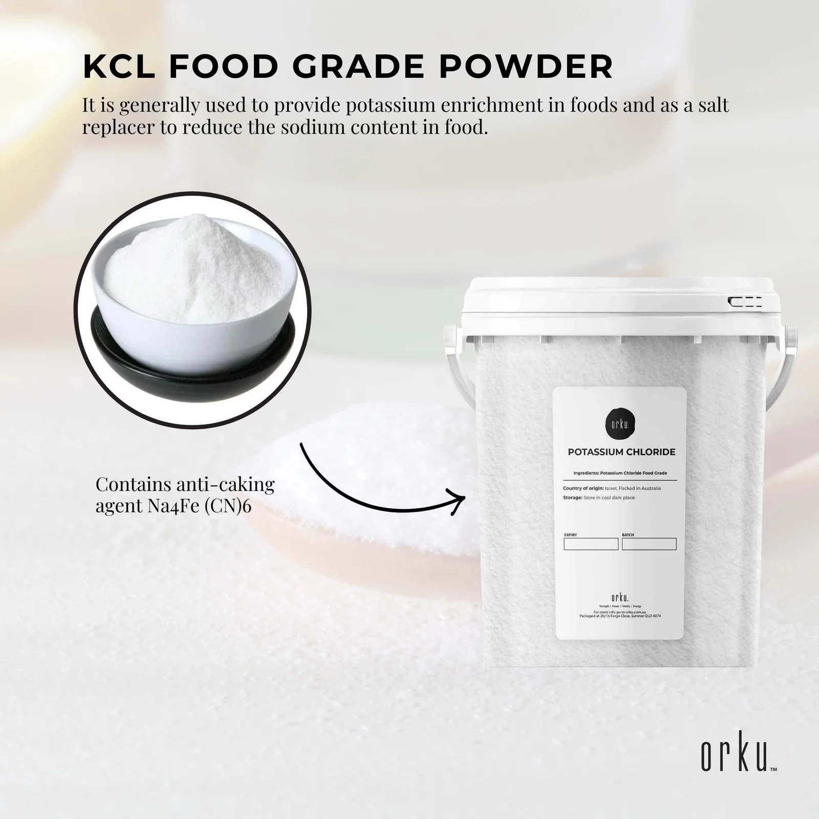Pure Potassium Chloride (KCL) E508 is a food grade powder that comes in a resealable bucket tub. It is a common and naturally occurring mineral. It is generally used to provide potassium enrichment in foods and as a salt replacer to reduce the sodium content in food.