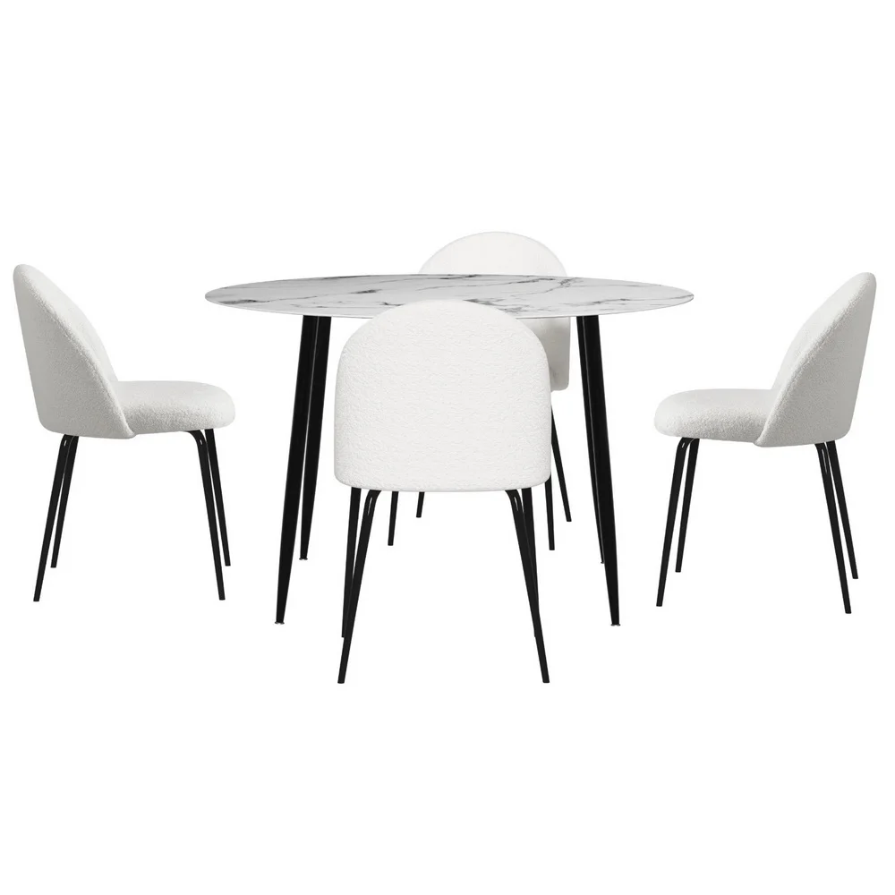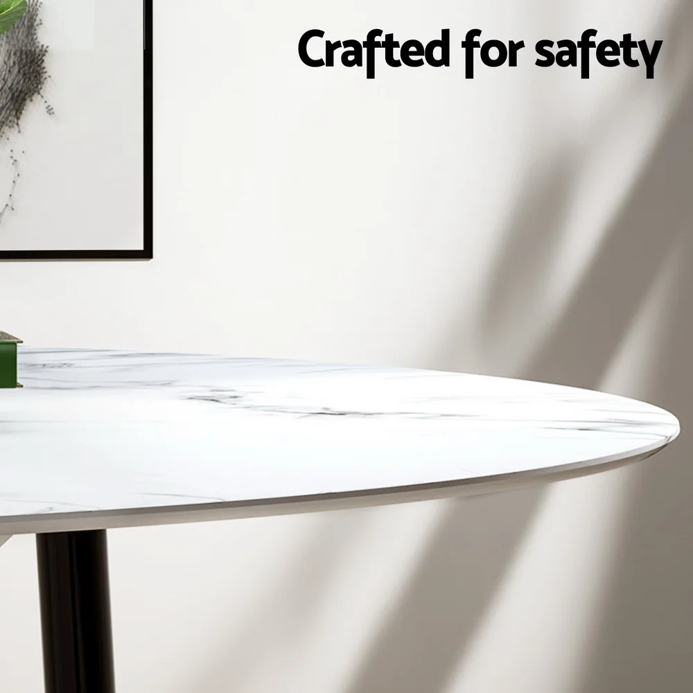 Everyone needs a dining table, and there's no dining table like an Artiss Marble Dining table. The table is an affordable alternative to real marble, made from particle board with a marble finish and sturdy metal legs without sacrificing elegance. Simple and modern, the table instantly makes a statement in your dining room with its minimalist appeal and sleek, sophisticated appearance. The round table features smooth edges for safety while the anti-rust, powder-coated steel legs are sturdy and durable with a weight capacity of up to 90kg. With its practical, industrial-style aesthetic, the dining table will suit most home and décor types and provides plenty of room for a family of four, whether it's dinner time, book club or board game night.