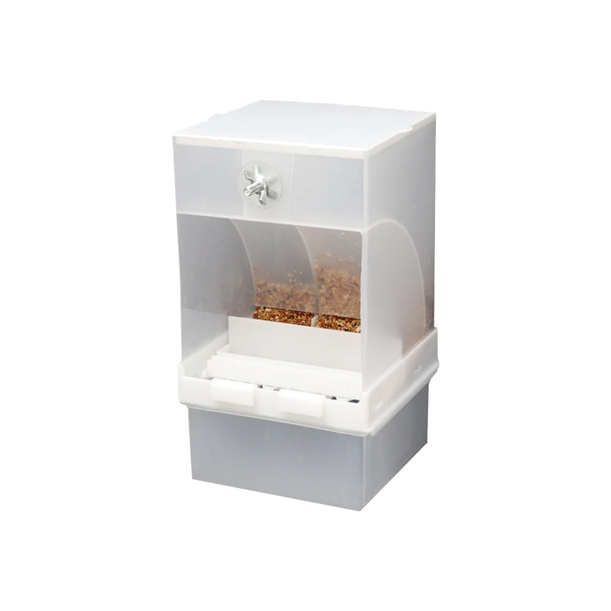 Keep your bird's feeding area clean and organised with this automatic anti-splash bird feeder.Designed for budgies, cockatiels, and similar small parrots, it features a husk separation drawer and dual feeding compartments.Made from food-grade PP material, it ensures durability, reliability, and easy maintenance for everyday use.