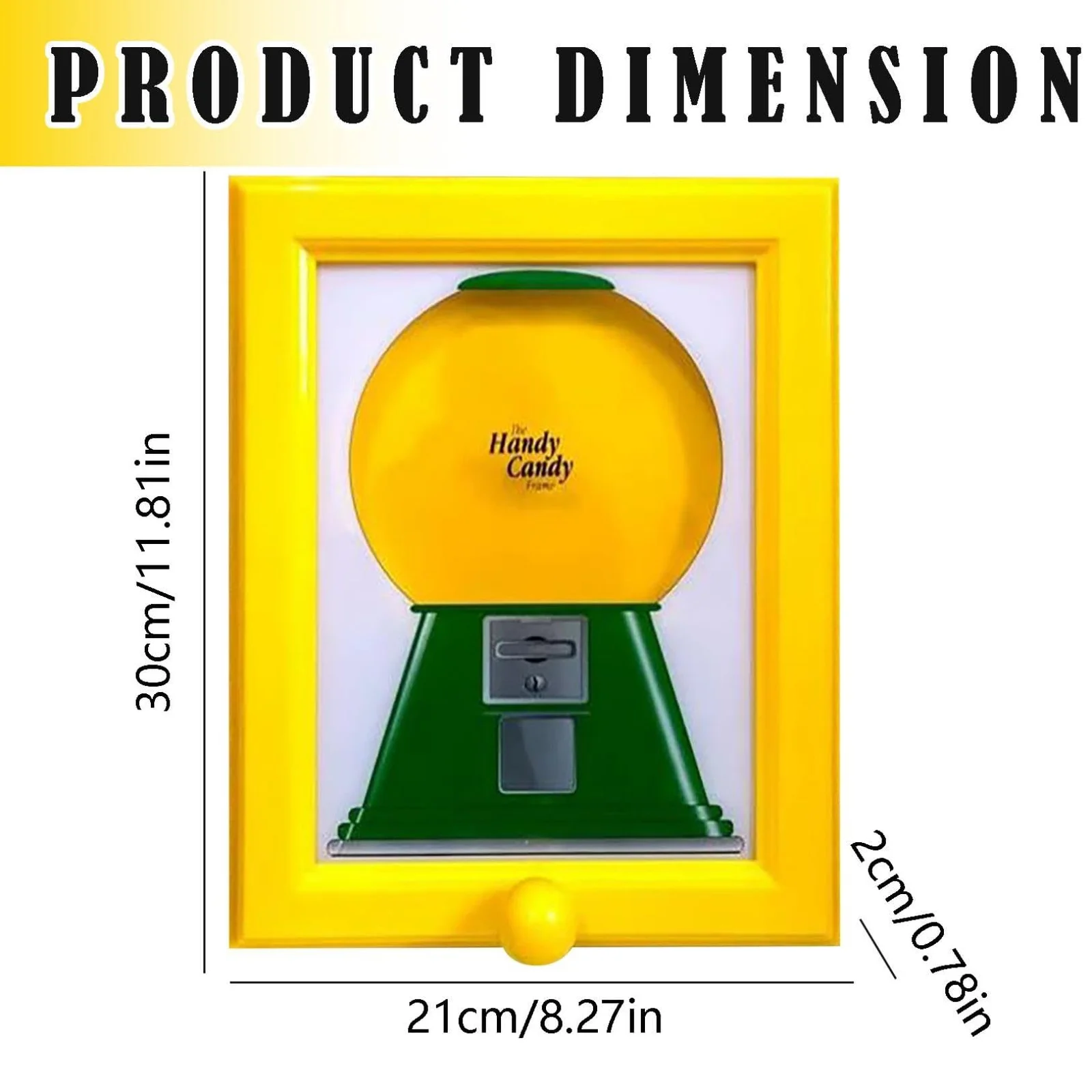 This rare vintage-style candy dispenser combines a frame design with a classic gumball-machine structure, ideal for home decor and fun interactive treats.Unique Creative Frame DesignBlends a candy machine with a decorative frame—serves as both a functional candy dispenser and a stylish wall/table decor piece, adding whimsy to any space.Fun Interactive ExperienceTurn the side handle to randomly dispense candies (like a surprise box), making it a playful addition to gatherings or daily treats.Versatile Home DecorFits various rooms (living rooms, bedrooms, game rooms) to enhance style while providing a convenient way to serve guests.Perfect Gift ChoiceGreat for birthdays, holidays, or gifting to friends—combining nostalgia, decor, and interactivity in one item.Material: Durable plasticColor: Yellow (frame) + green (candy machine)Size: 21×30×2cm (8.27×11.81×0.78in)