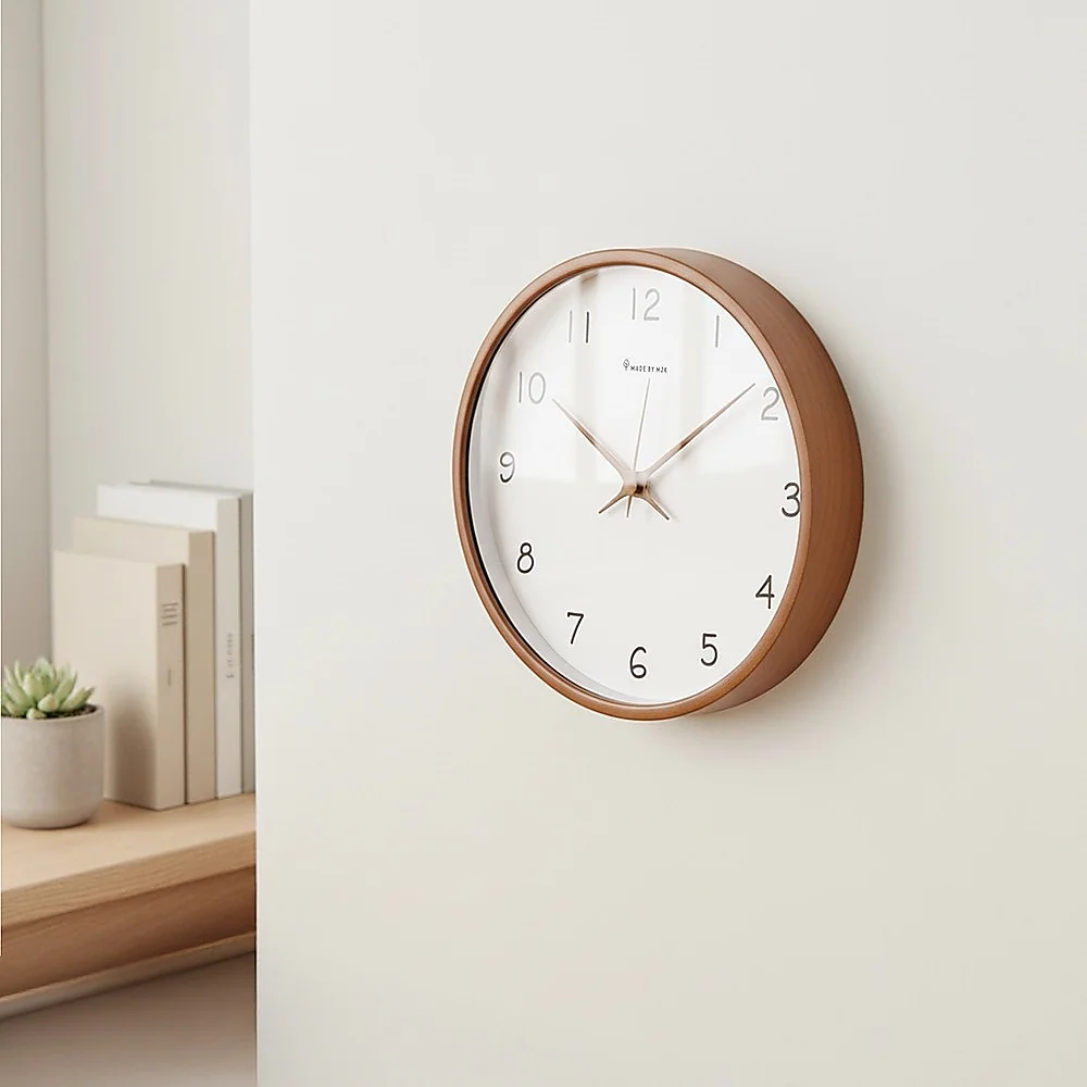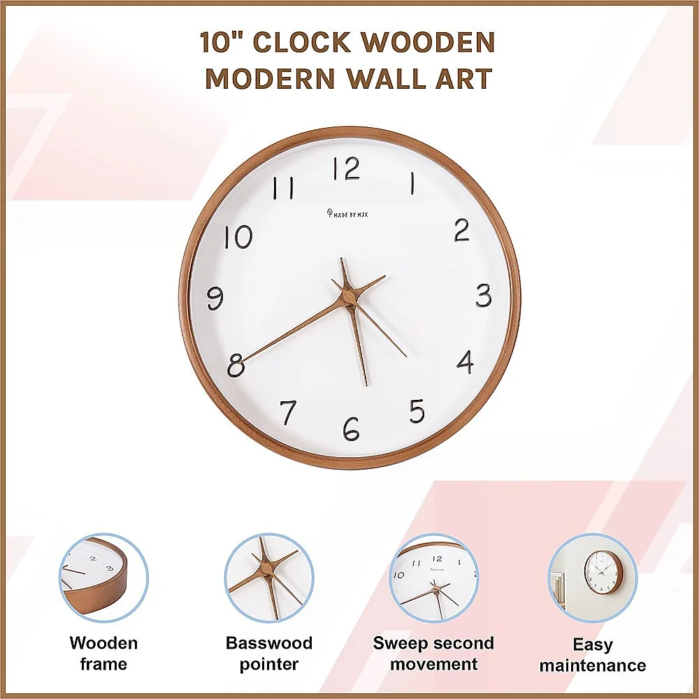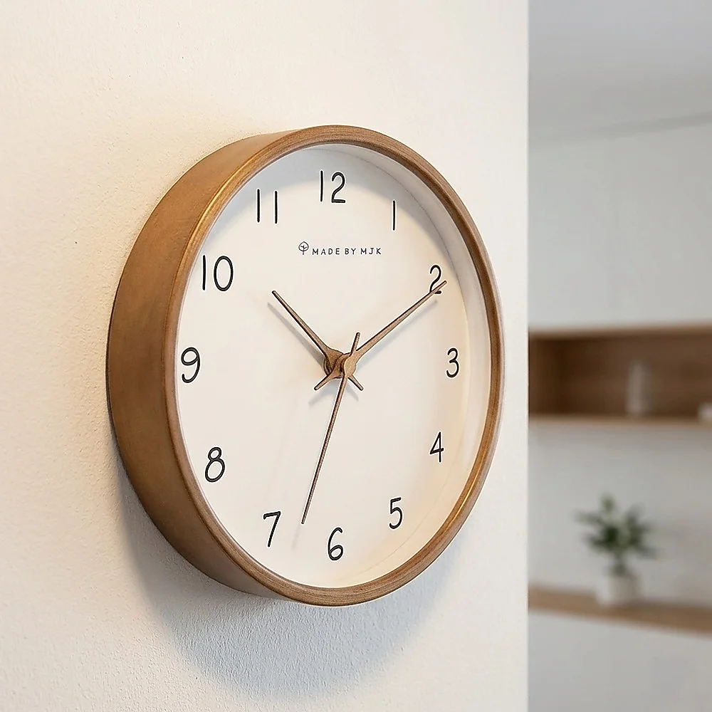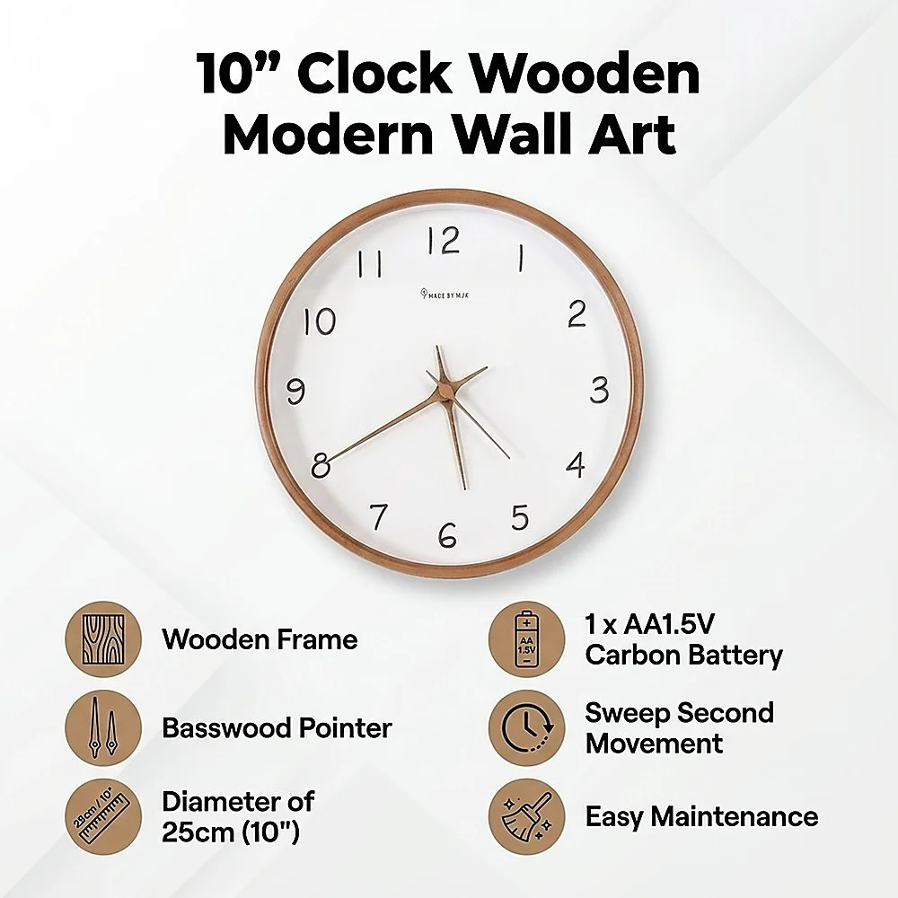 Driven by a battery-powered mechanism, this clock ensures unwavering functionality during power outages or electrical disruptions. Encased in natural solid wood, its simplicity brings a fresh and comfortable look and feel in any room. This clock effortlessly complements any room within a household, or even in an office, adding an attractive accent that contributes to the visual allure of its surroundings.