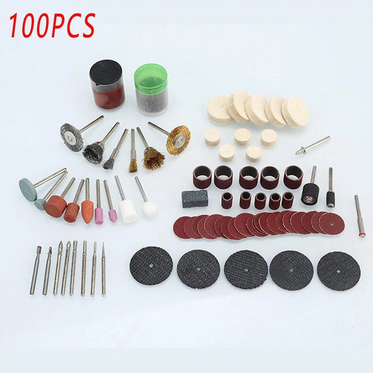 Material: Stainless steel, abrasive stones, nylon Set Options: 100pcs or 147pcs Functionality: Grinding, cutting, polishing, drilling Compatibility: Works with most electric rotary tools Dimensions: Various sizes for different applications