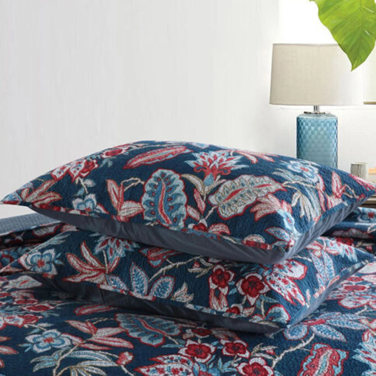Make your bedroom look attractive and full of energy with this gorgeous 100% Cotton Lightly Quilted Coverlet Set Bornean Queen. It features quilted floral design in white, aqua, blue, cream, yellow, green, red, pink, black, and brown colour tones. Exquisite quilting process of quit set can maintain cotton filler effectively. Light weight, medium warmth, year-round use. Easy-care machine washable, prewashed and preshrunk. It is made from 100% Cotton fabric with approx 150gsm 100% Cotton filling for a relaxing night's sleep.