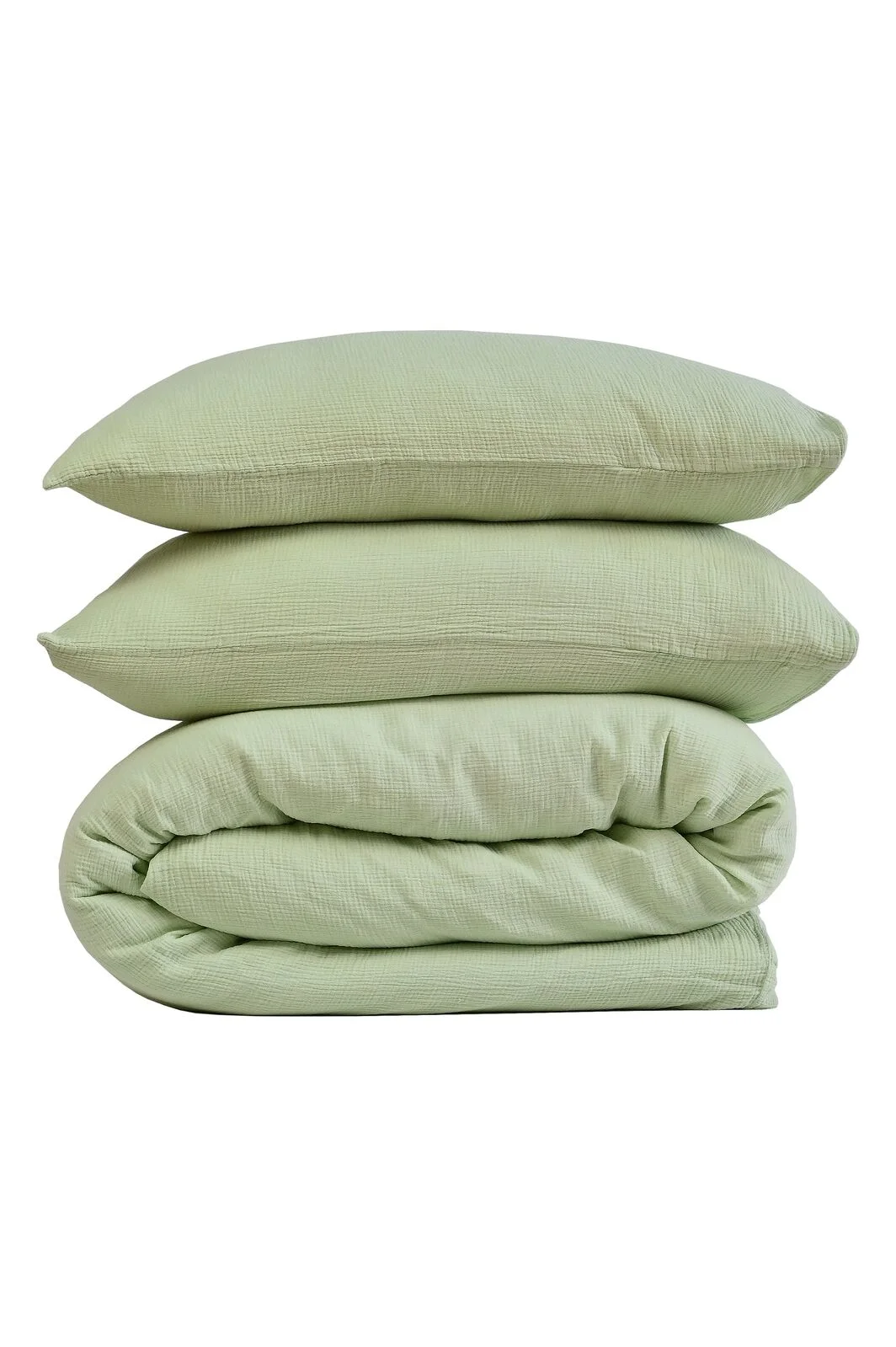 Light, airy, and effortlessly stylish – the Jade Cotton Muslin Duvet Cover Set is your bedroom’s new best mate. Whether you’re curling up for a summer snooze or layering up for winter, Jade’s 100% cotton muslin fabric keeps you cool, comfy, and well-rested. It’s got that barely-there feel, but still delivers the perfect balance of softness and snugness. And with its chilled-out green hue and minimalist charm, it’ll have your sleep space looking calm, modern, and oh-so-inviting.