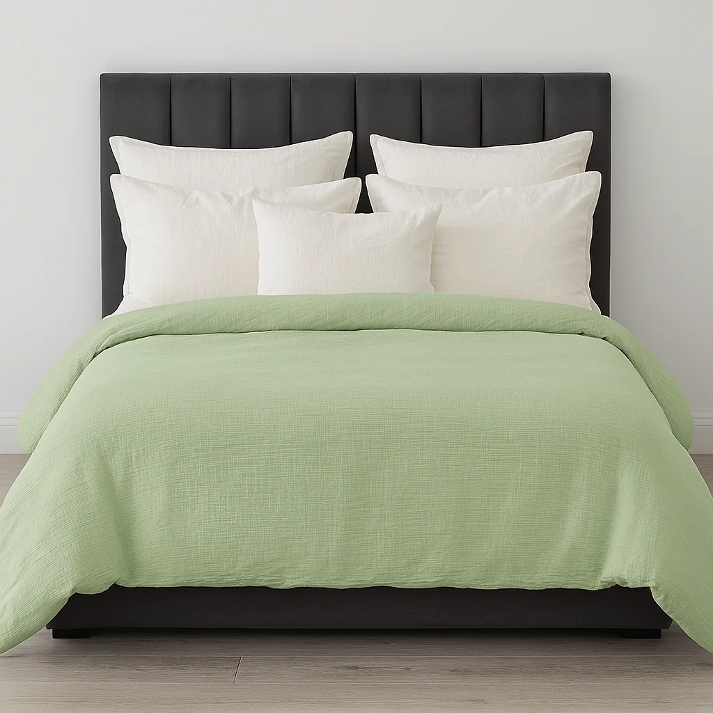 Light, airy, and effortlessly stylish – the Jade Cotton Muslin Duvet Cover Set is your bedroom’s new best mate. Whether you’re curling up for a summer snooze or layering up for winter, Jade’s 100% cotton muslin fabric keeps you cool, comfy, and well-rested. It’s got that barely-there feel, but still delivers the perfect balance of softness and snugness. And with its chilled-out green hue and minimalist charm, it’ll have your sleep space looking calm, modern, and oh-so-inviting.