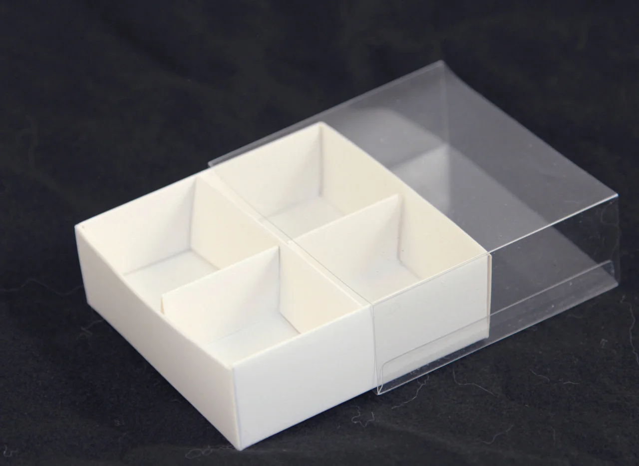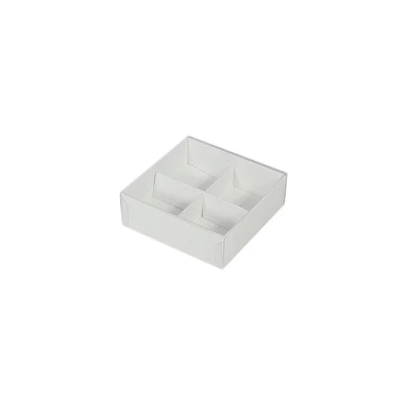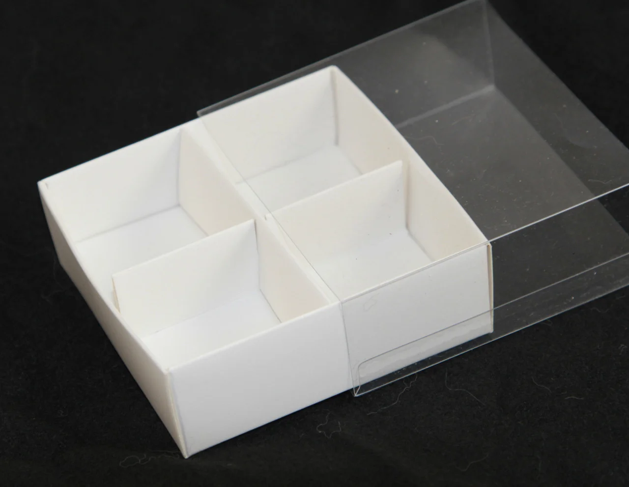 100 Pcs 82mm x 82mm x 30m White Box with Clear Plastic Slide On Lid - Insert for 4 items