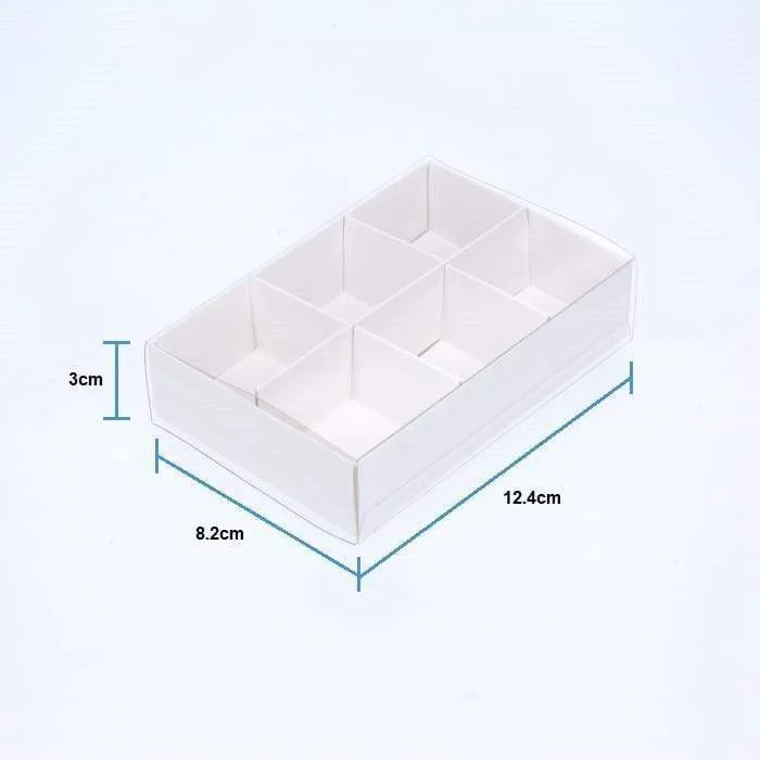 100 Pcs 123mm x 82mm x 30m White Box with Clear Plastic Slide On Lid - Insert for 6 items