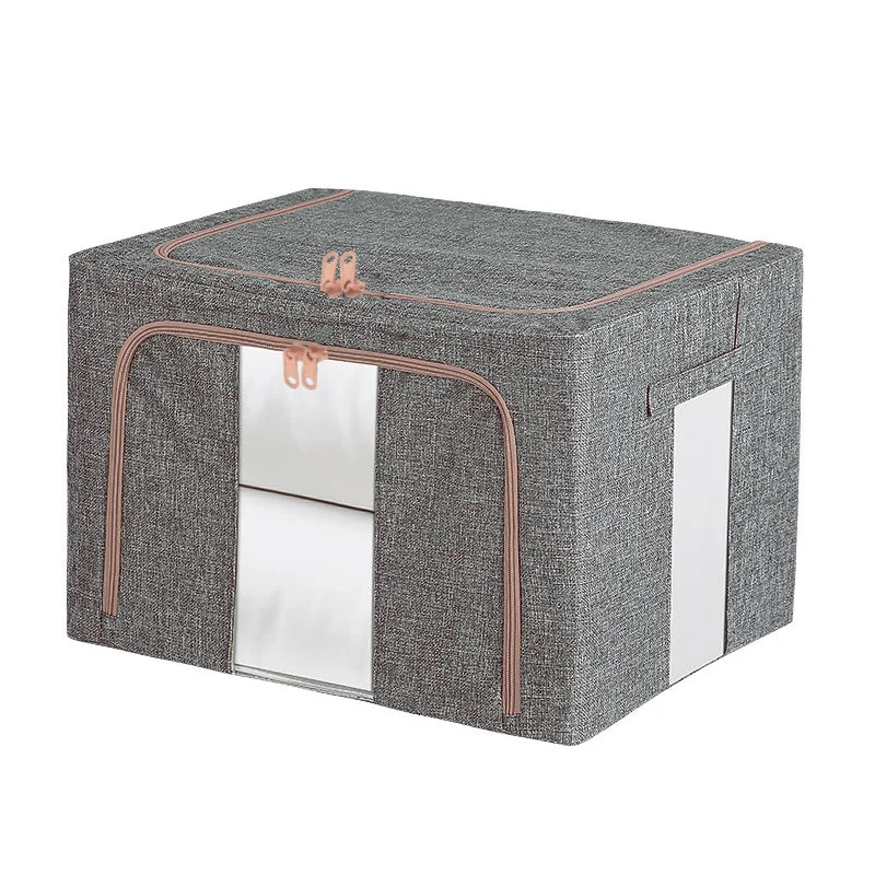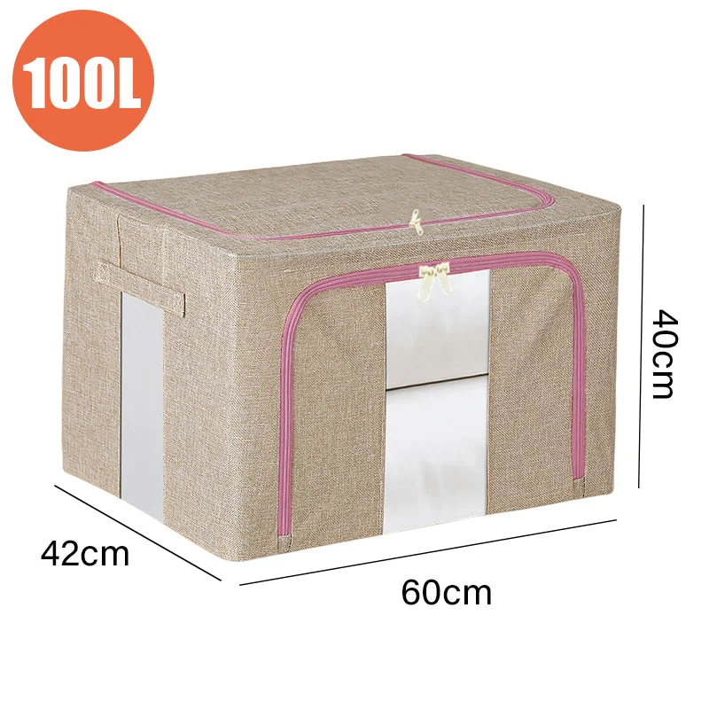 - Material: Linen Cloth + Steel Frame - Colour: Grey / Beige/ Navy - Capacity: 100L - Size: 100L (60x42x40cm)
