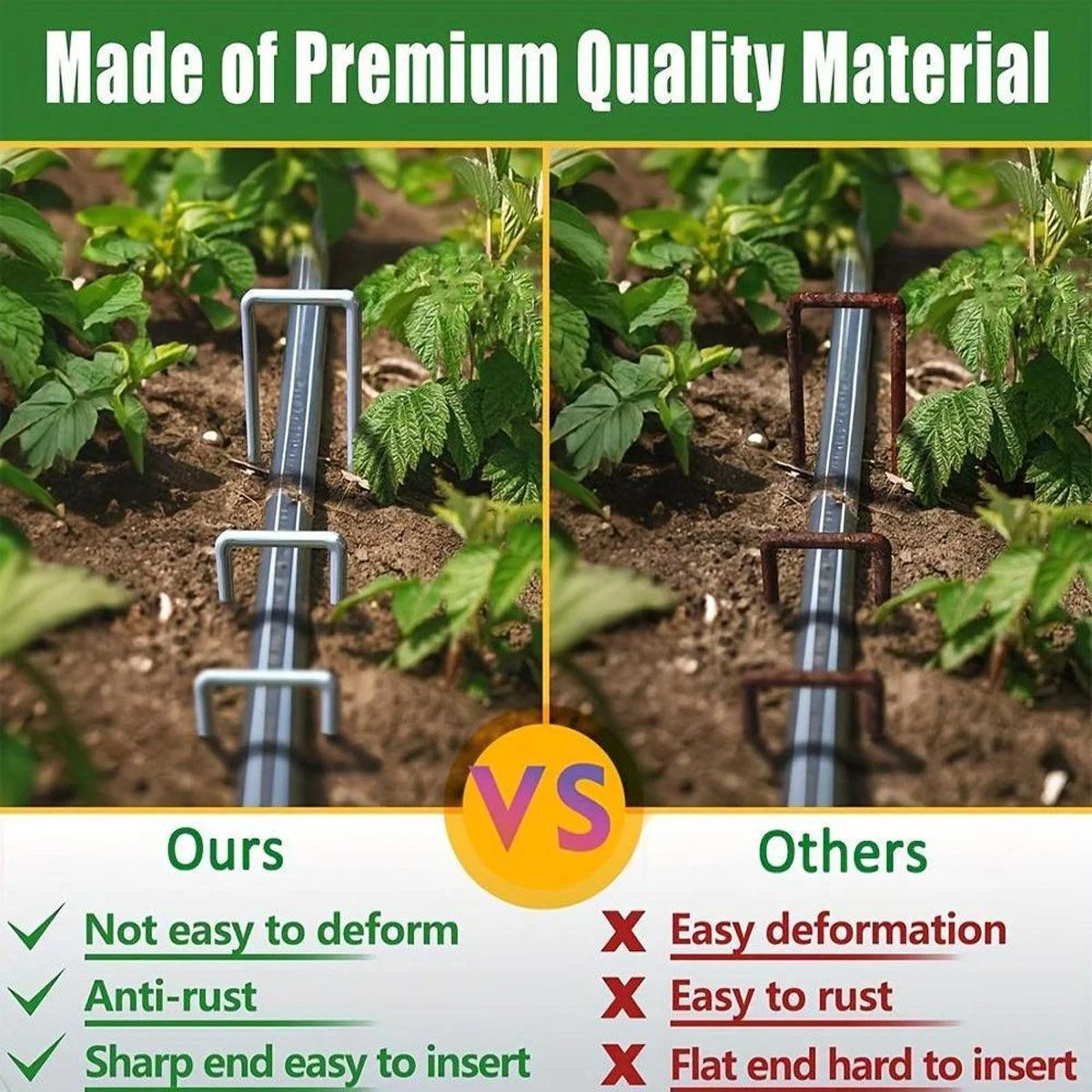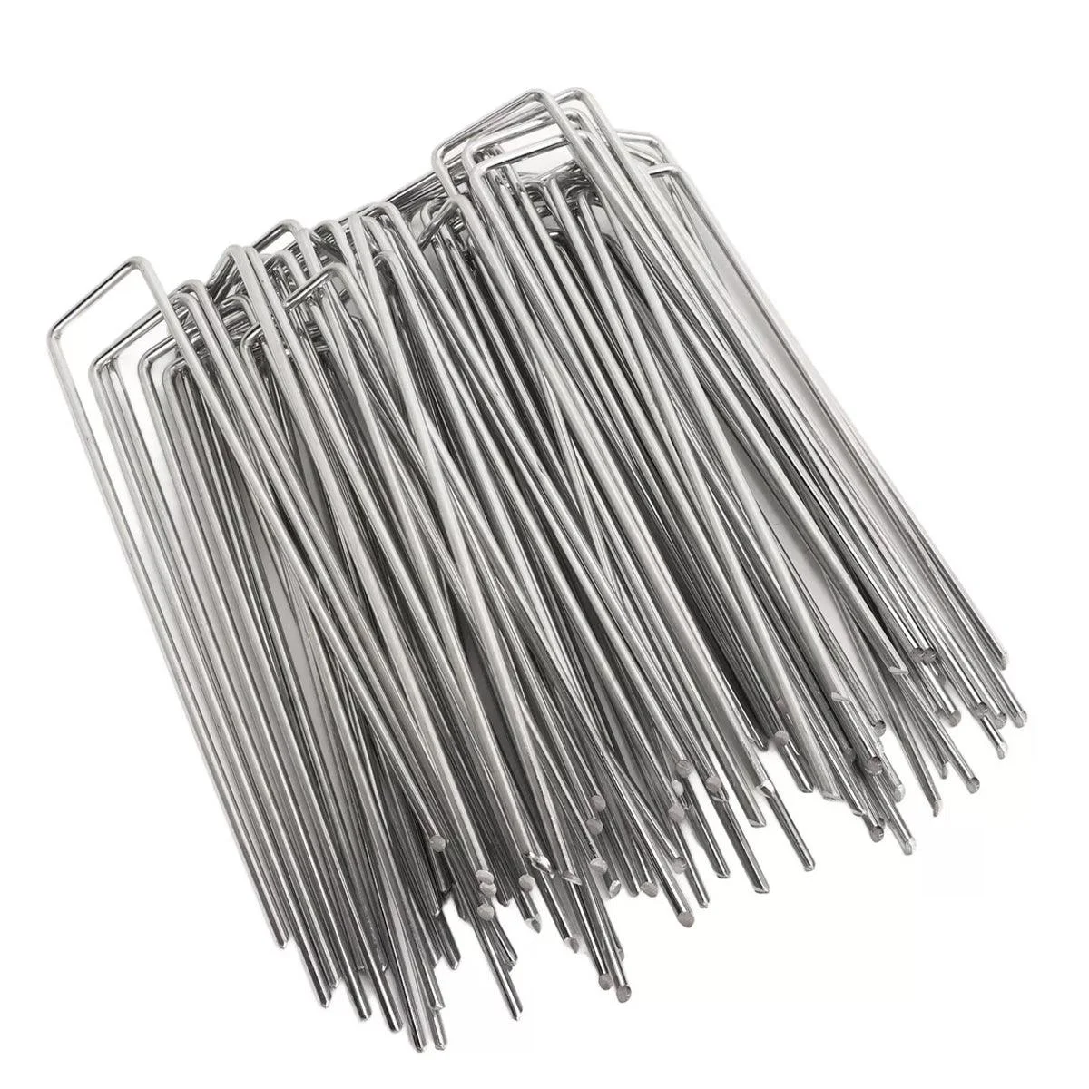 These U-shaped garden staples are a reliable and efficient solution for securing landscaping fabric, weed barriers, netting, and garden decorations. Designed with a 45° sharp tip, they easily penetrate hard soil, reducing installation time and effort. Made from durable, rust-resistant steel, these staples are built for long-lasting use. Their strong, rigid structure prevents bending under pressure, ensuring secure anchoring for a wide range of outdoor applications. Whether you're setting up ground covers or securing tents, these staples offer excellent holding power and performance.