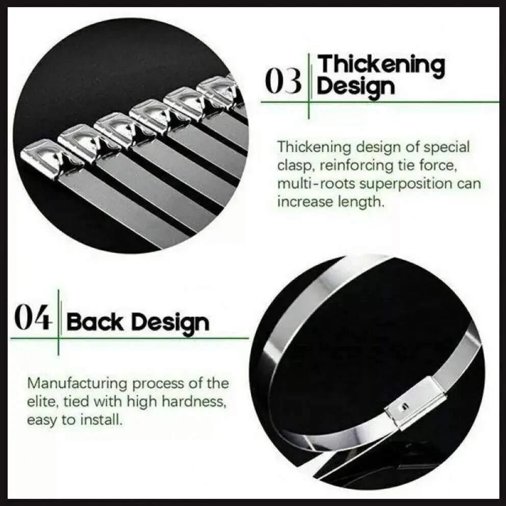 Stainless steel cable tie are made from superior quality, 304 grade stainless steel.Ideal for use in the home, office, car or boat. And suitable for Stainless Steel Cable Fasten Gun. High temperature resistant, cold resistant, weatherproof. Their proven streamlined design will not only look great in any space, but enhances both living and working areas with increased functionality and safety.
