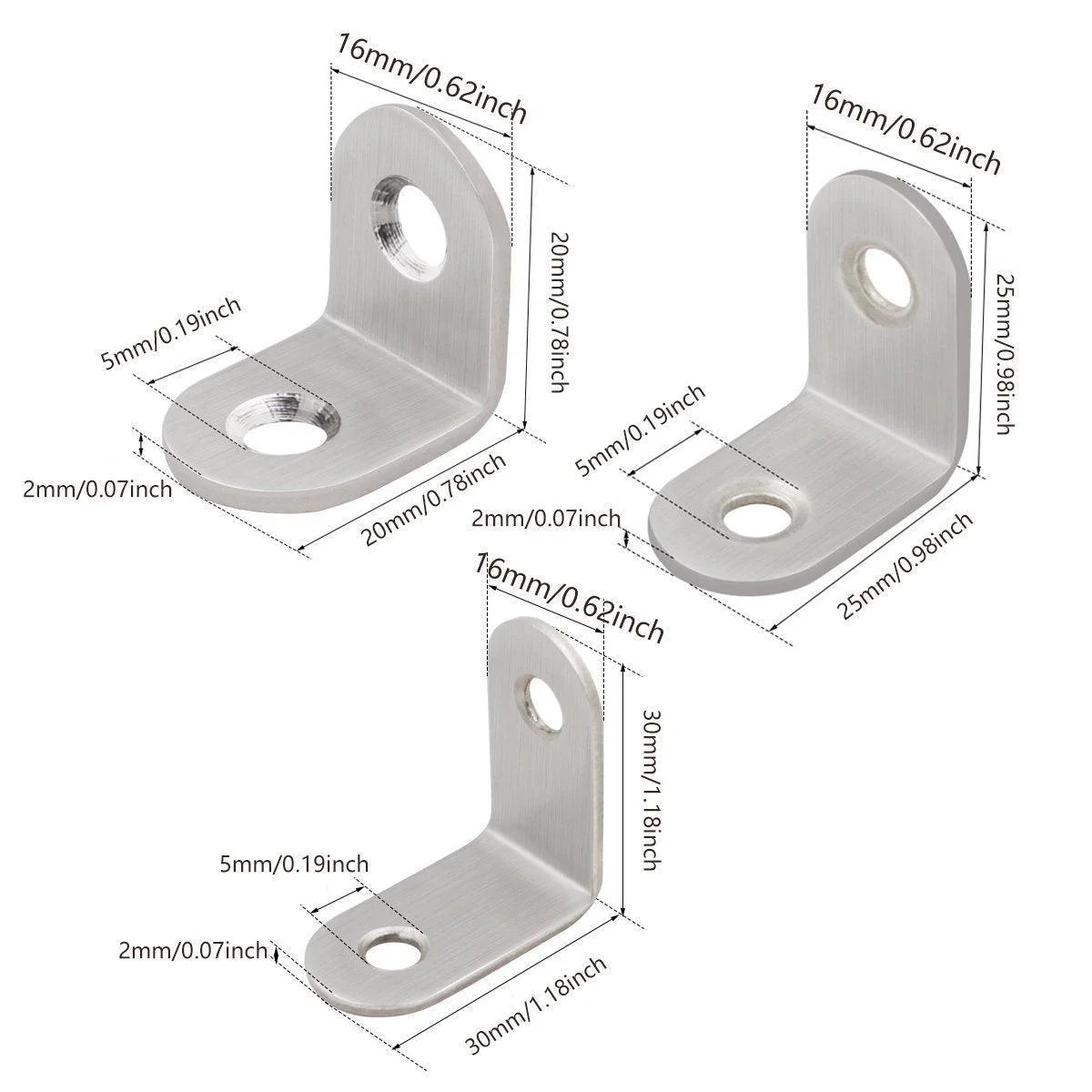 These 90-degree L-shaped corner brackets are essential for adding strength and stability to your furniture projects. Made from premium stainless steel with a brushed finish, these brackets are designed to resist rust and corrosion, ensuring long-lasting durability. Whether you're building new furniture or reinforcing existing structures, these brackets provide reliable support for shelves, tables, cabinets, and more. The smooth edges and countersunk screw holes ensure a neat and professional installation, making these brackets a versatile choice for any DIY or professional project.