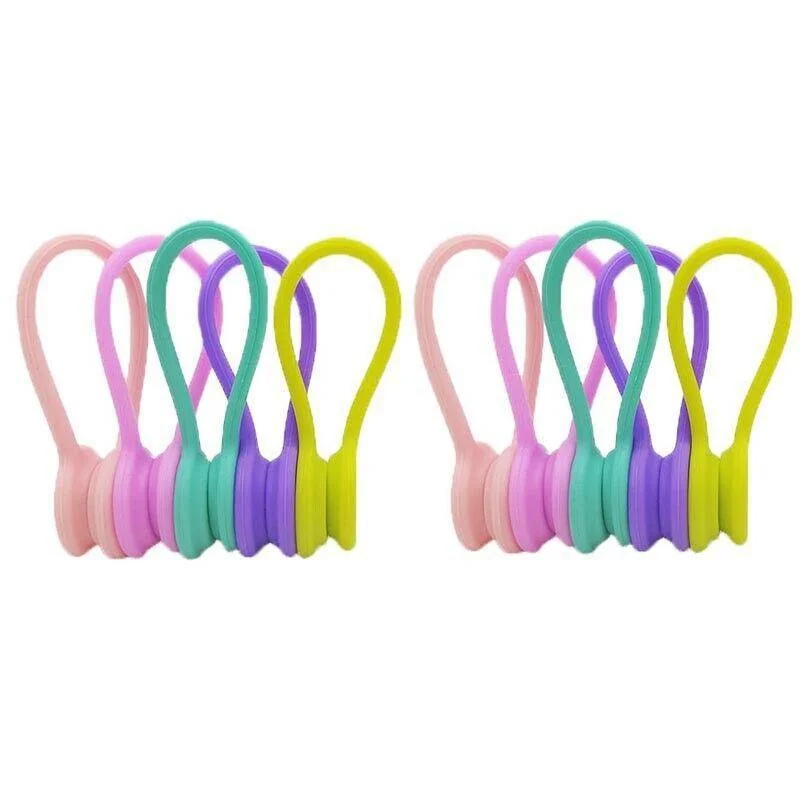 Keep your cables neat and tangle-free with this 10-piece cable tie organizer set, designed for convenience and everyday use. Featuring a snap-together design, these soft silicone cord clips are ideal for managing headphone wires, charging cables, USB cords, and more.
