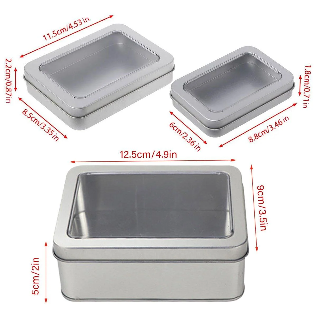 These 10pcs Rectangular Tinplate Boxes are made of high-quality metal for durability and long-lasting use. Featuring a full window design, these small storage boxes allow you to clearly view their contents, making them ideal for organizing small items such as USB drives, jewellery, office supplies, and more. The compact, sturdy design makes them easy to store, carry, and display.