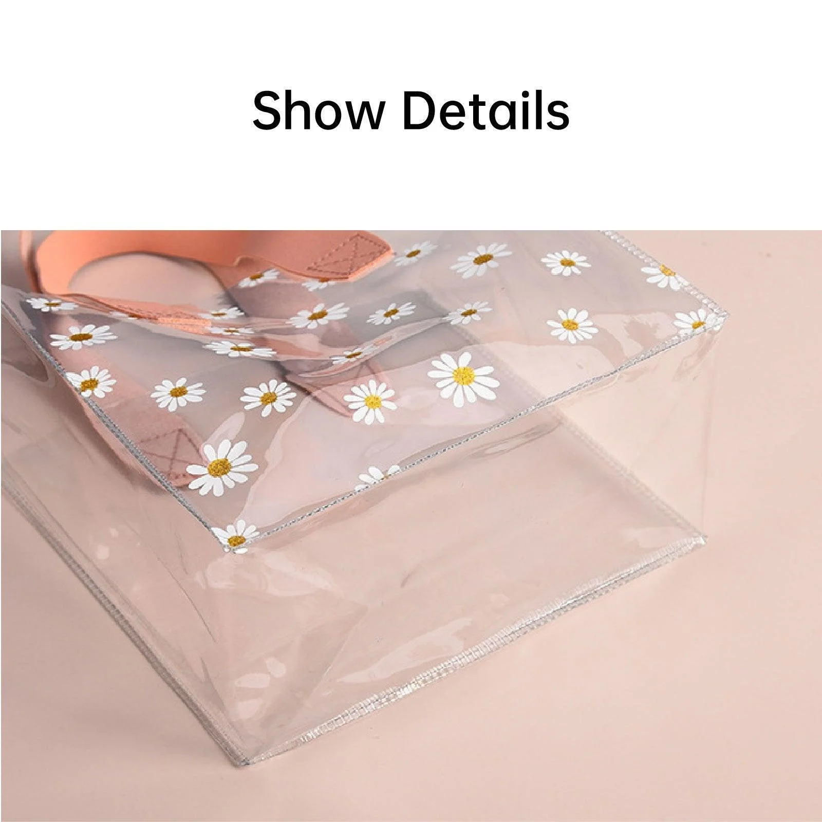 Add a touch of freshness to your special occasions with these charming transparent PVC tote bags. Decorated with delicate daisies, these bags are perfect for weddings, birthdays, shopping, and more. Their stylish design and durable construction make them a practical and attractive choice for gift-giving and everyday use. Available in three handle colours, they offer versatility and convenience for all your needs.