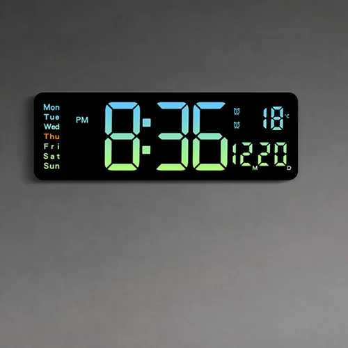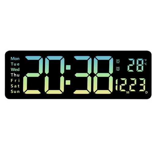 Our digital wall clock is 16" long and comes with large Arabic numerals, making it quite easy to view and read even from a distance. Time, date, day of the week and temperature are all displayed on the same screen. Two-color week display is more intuitive and clearer.