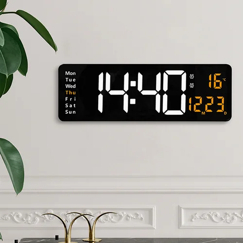 Our digital wall clock is 16" long and comes with large Arabic numerals, making it quite easy to view and read even from a distance. Time, date, day of the week and temperature are all displayed on the same screen. Two-color week display is more intuitive and clearer.