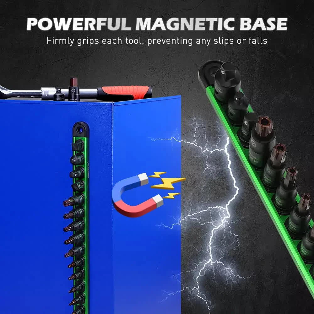 ORGANIZED PORTABILITY - The magnetic socket rail organizer keeps all Torx bit sockets securely in place, both in your toolbox and on the go. Effortlessly maintain your star socket set with ease and convenience.