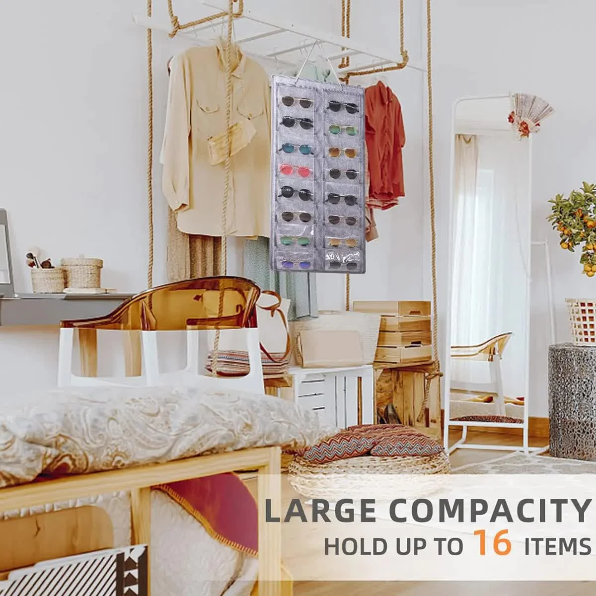 Reclaim your space and keep your valuable eyewear collection perfectly organized with this dedicated hanging storage solution. Designed to protect and display your sunglasses and eyeglasses, this organizer is a stylish and functional addition to any home, helping you move from a messy environment to an orderly one.