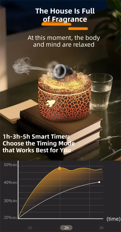 Bring a calming and visually stunning atmosphere to any room with this unique Simulation Flame Aroma Diffuser. Utilizing ultrasonic technology, it silently mists water and essential oils (not included) while creating a realistic, moving flame effect using LED lighting and mist. The rugged Volcano Lava Crack shell design adds an aesthetic touch, making it a perfect piece for home, office, or spa decor.