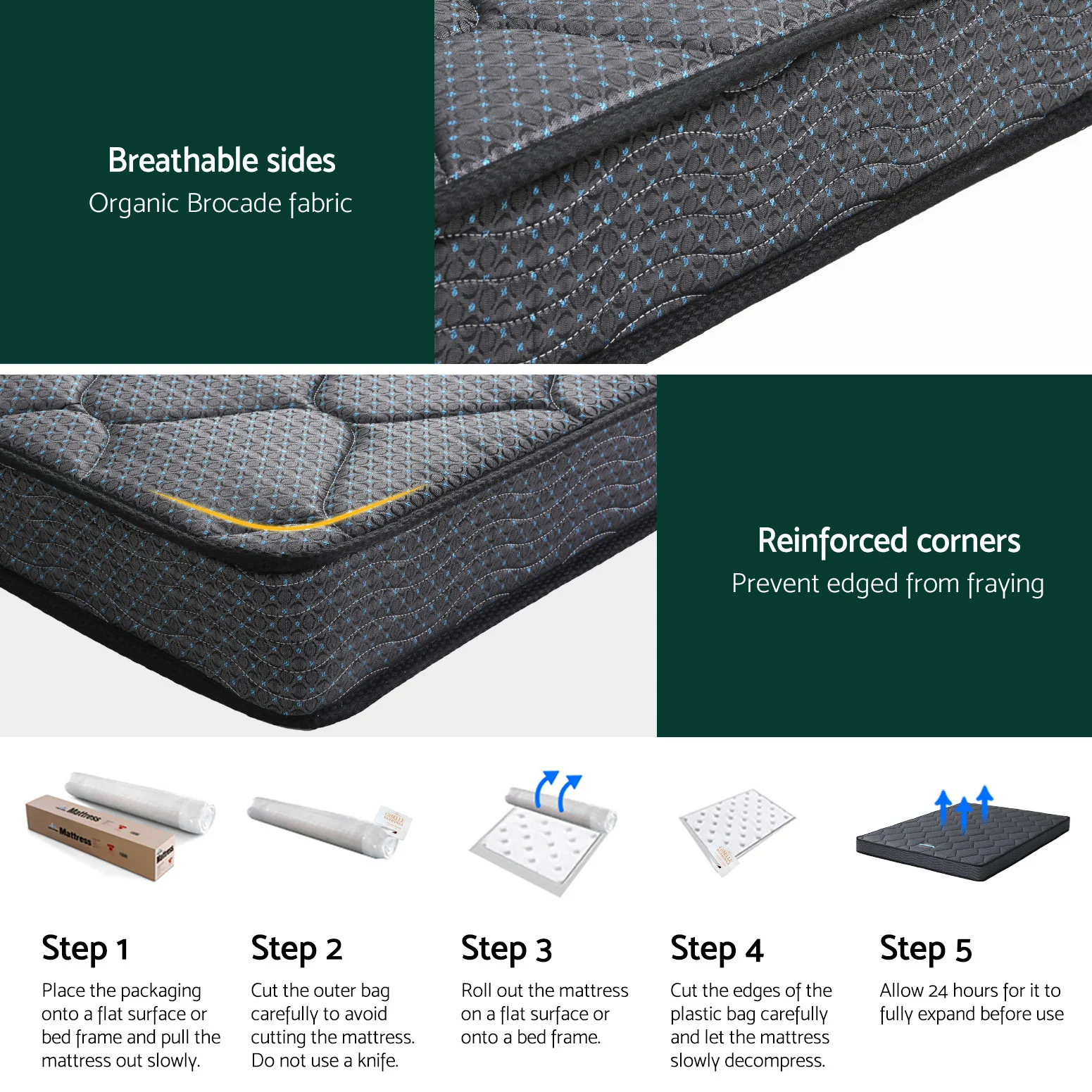 Built with durability in mind, the mattress boasts a Bonnell spring core with 6-turn coils for resilience and support. High-density foam layers add an extra touch of comfort, while the excellent edge support ensures stability and prevents sagging. Whether for a master bedroom or guest room, this mattress delivers quality sleep night after night.