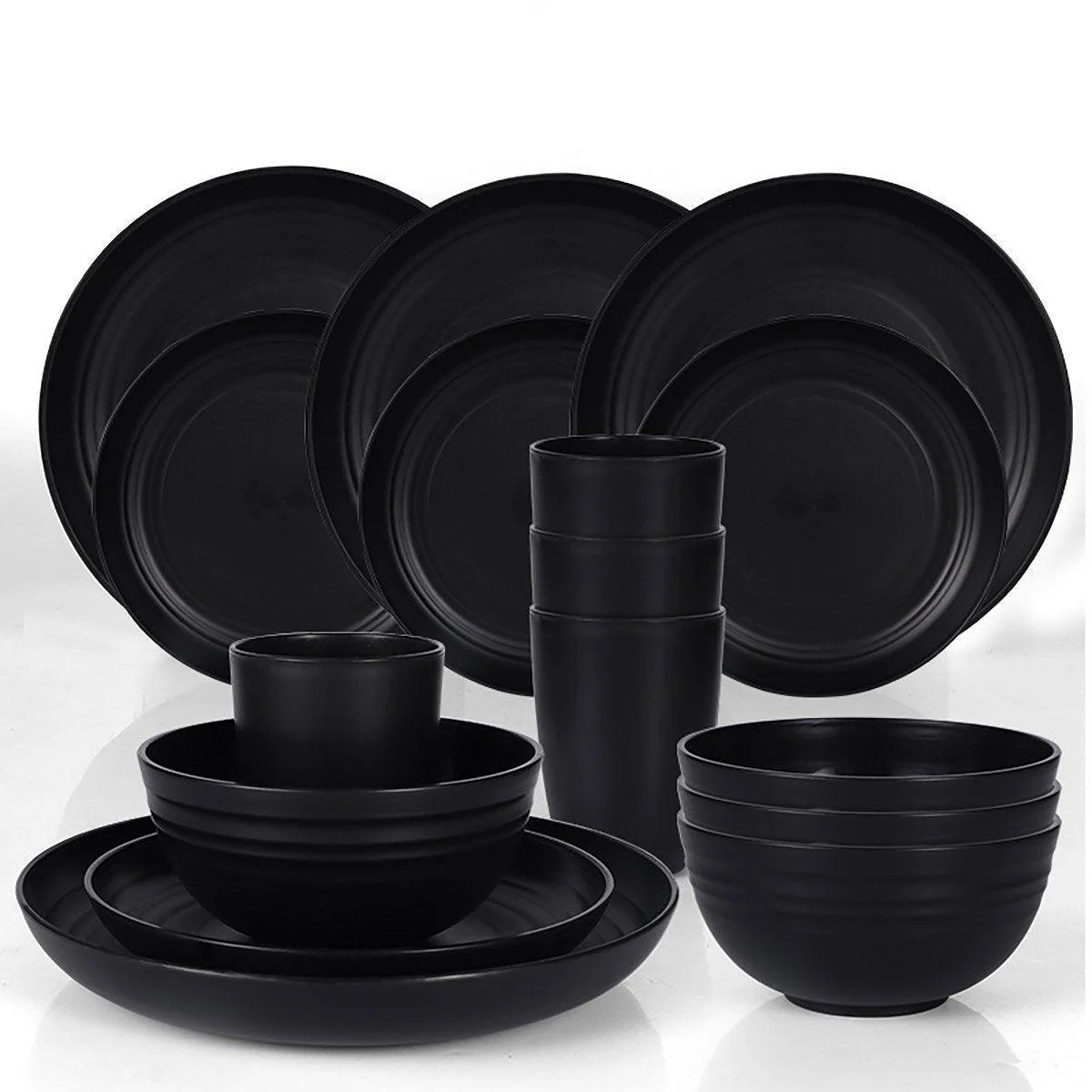 Experience the convenience and sustainability of dining with this Eco-Friendly Wheat Straw Portable Tableware Set. This versatile 16-piece set is designed for a variety of occasions, whether it's a family meal at home or an outdoor adventure. Made from renewable wheat straw and food-grade PP material, it provides a lightweight yet sturdy alternative to traditional tableware. The sleek black design adds a modern touch to any setting, making it ideal for camping, picnics, travel, or everyday use.