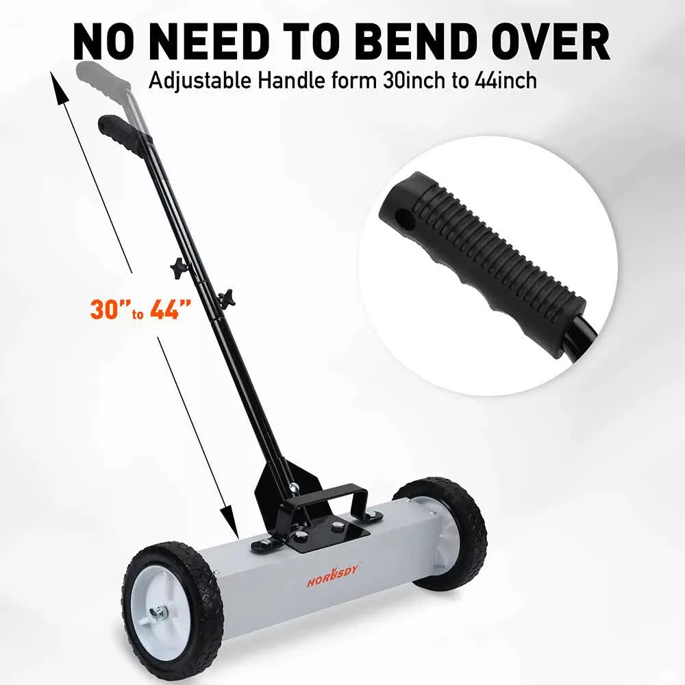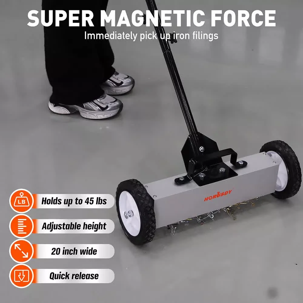 Enhanced Security: With 45LBS high carrying capacity, The push-pull magnetic sweeper plays a crucial role in maintaining a safe work environment by efficiently picking up stray nails, screws, and other ferrous materials. Removing these hazards from the construction site reduces the risk of injuries to workers and prevents damage to equipment and vehicles.