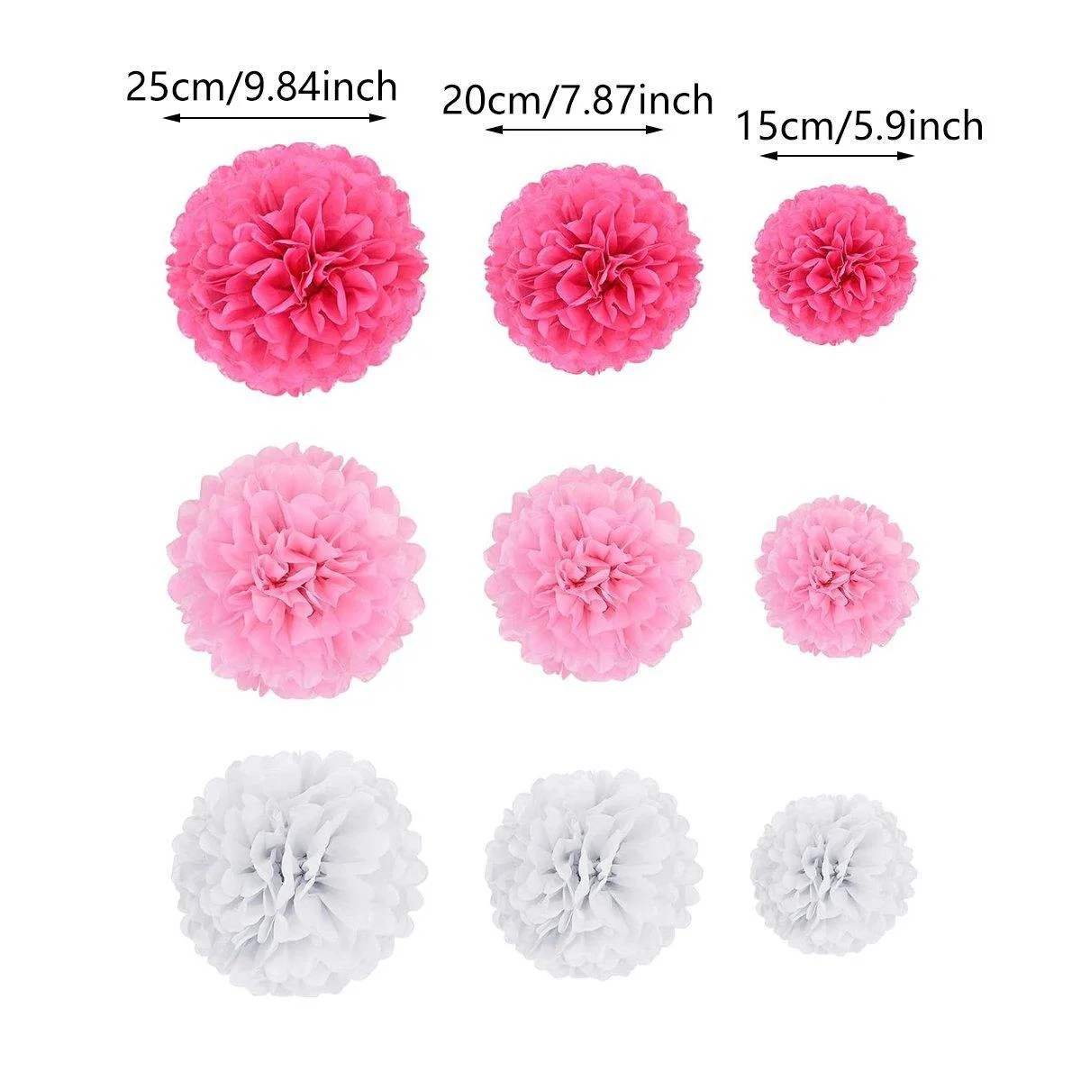 Add a touch of elegance to any celebration with this set of pink and white hanging paper flower balls. Perfect for New Year, birthdays, weddings, and parties, these decorations are designed to bring a vibrant, festive atmosphere to your event. Made from high-quality tissue paper, these flower balls are lightweight and easy to assemble, making them suitable for indoor and outdoor use. Create a whimsical floral setting that your guests will remember!