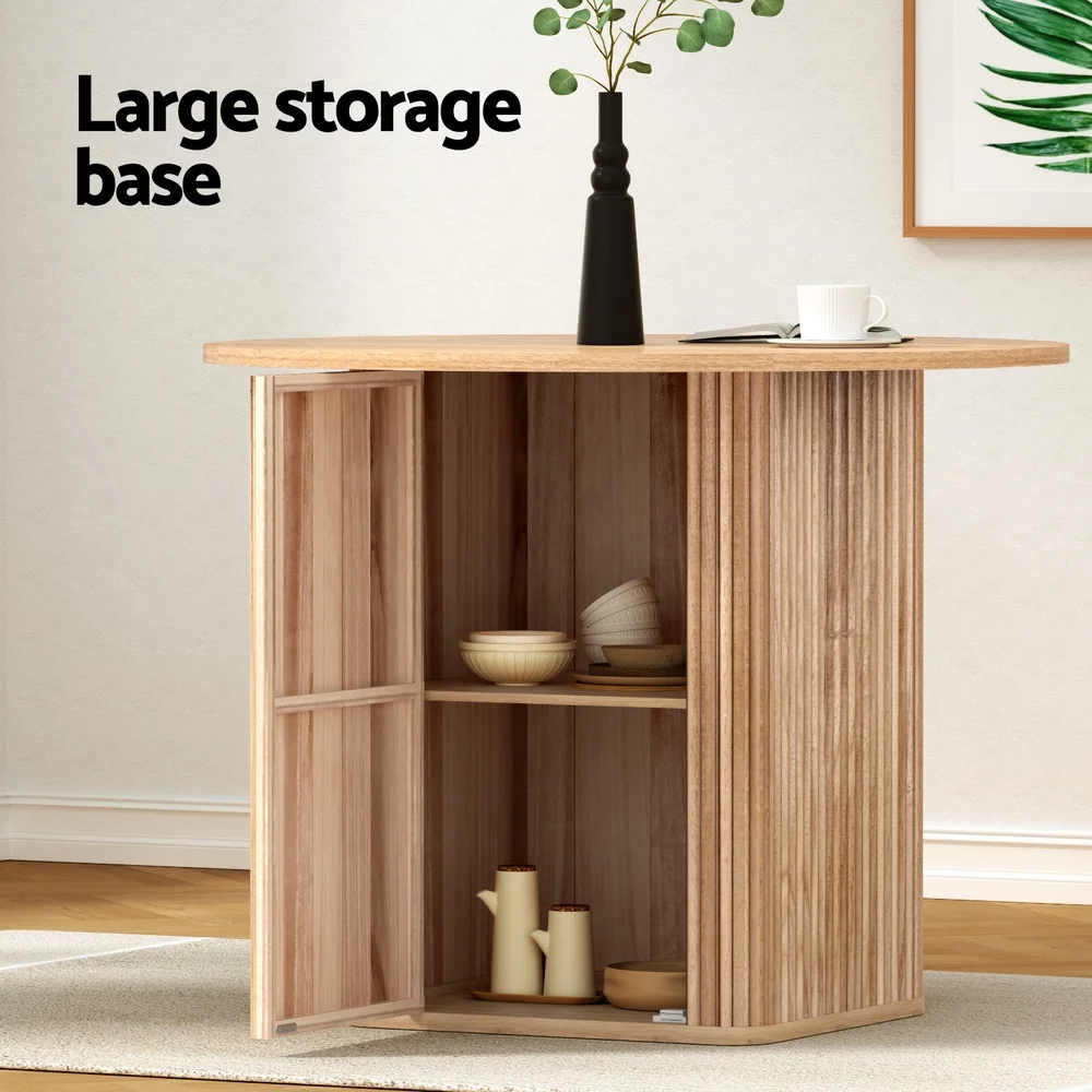 The Artiss 4-Seater Dining Table combines functionality and style, perfect for smaller homes or apartments. Designed with a fluted wood base and thick particle board, it offers a sturdy and durable structure that will stand the test of time. The table provides generous storage space, allowing you to keep your dining area organised and tidy. Smooth edges enhance its aesthetic appeal while ensuring safety for all users.
