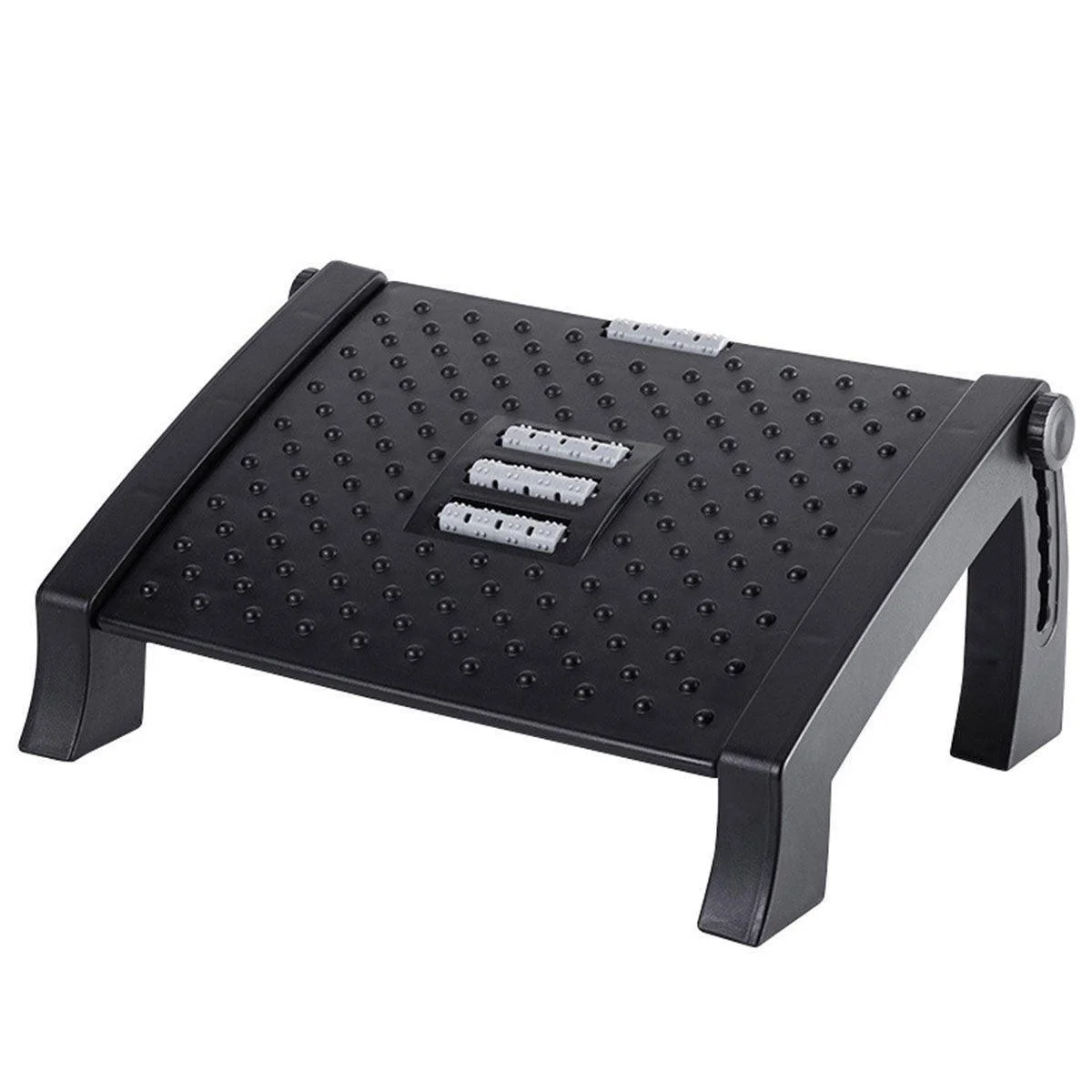 This adjustable footrest stool provides essential comfort and support for your legs and feet, whether at home, in the office, or working from a sofa. Its ergonomic design improves posture, reduces pressure on your legs, and helps prevent discomfort caused by prolonged sitting. With six adjustable height settings, you can easily find the perfect height to suit your needs. The footrest also features massage granules and rollers, offering a relaxing foot massage while you work. Its sturdy construction ensures durability, while the non-slip pads provide stability, preventing unwanted movement on various surfaces.