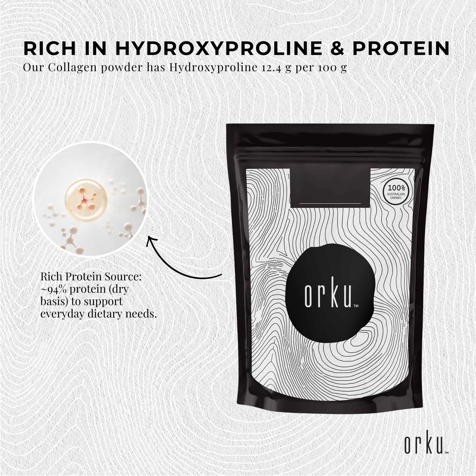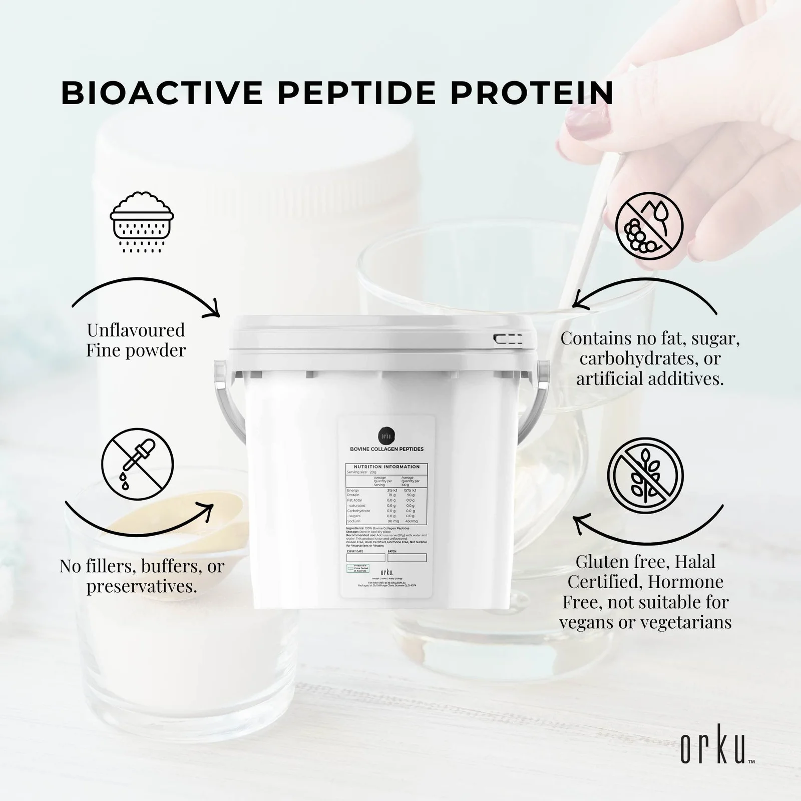Orku Bovine Collagen Hydrolysate is a bioactive peptide protein that supports the body's own collagen found in bones, joints, skin, hair, and nails.