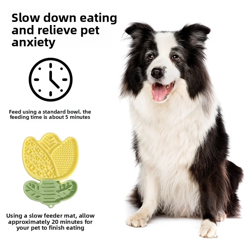 Enhance your pet's feeding experience with this adorable Tulip Shaped Silicone Licking Mat. Designed to promote slower eating and reduce anxiety, this multi-textured mat turns mealtime into an engaging game. Perfect for dogs and cats of all sizes, it helps soothe and calm your pet through repetitive licking, releasing endorphins that relax them during stressful times like grooming, bathing, or thunderstorms.