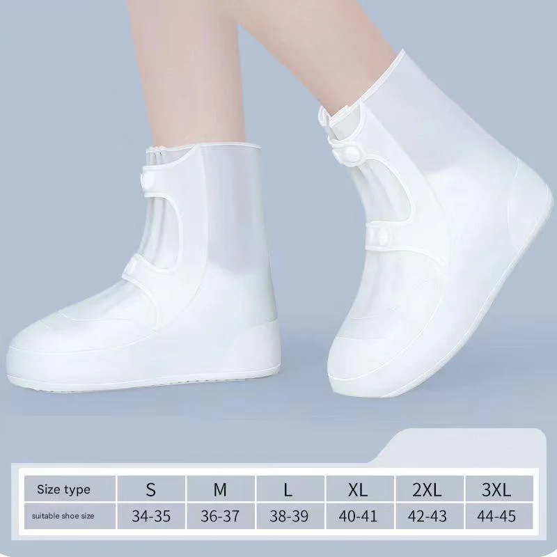2 Pcs Size L White Reusable Waterproof Shoe Covers - Heavy Duty Non-Slip Rain Boot Protectors