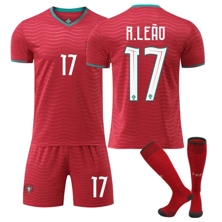 Each set includes: 1 x Home Red Short-Sleeve Jersey, 1 x Matching Shorts, 1 x Themed Long Socks