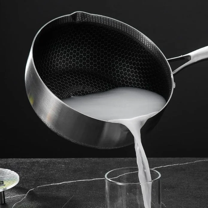 3. FAST EVEN HEATING - The entire milk pan body is all seven-ply bonded construction ensures optimal heat distribution for fast even heating and energy saving, suitable for all hobs: gas, electric, induction, ceramic stoves.