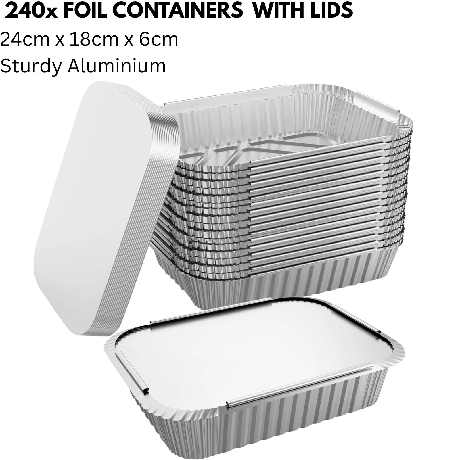Whether you're baking up a storm, stocking the freezer, or packing meals for takeaway, these aluminium foil trays are the kitchen sidekick you didn’t know you needed. With 240 sturdy containers and matching lids, this bulk pack gives you the flexibility to cook, store, and serve — all with minimal fuss and zero washing up.