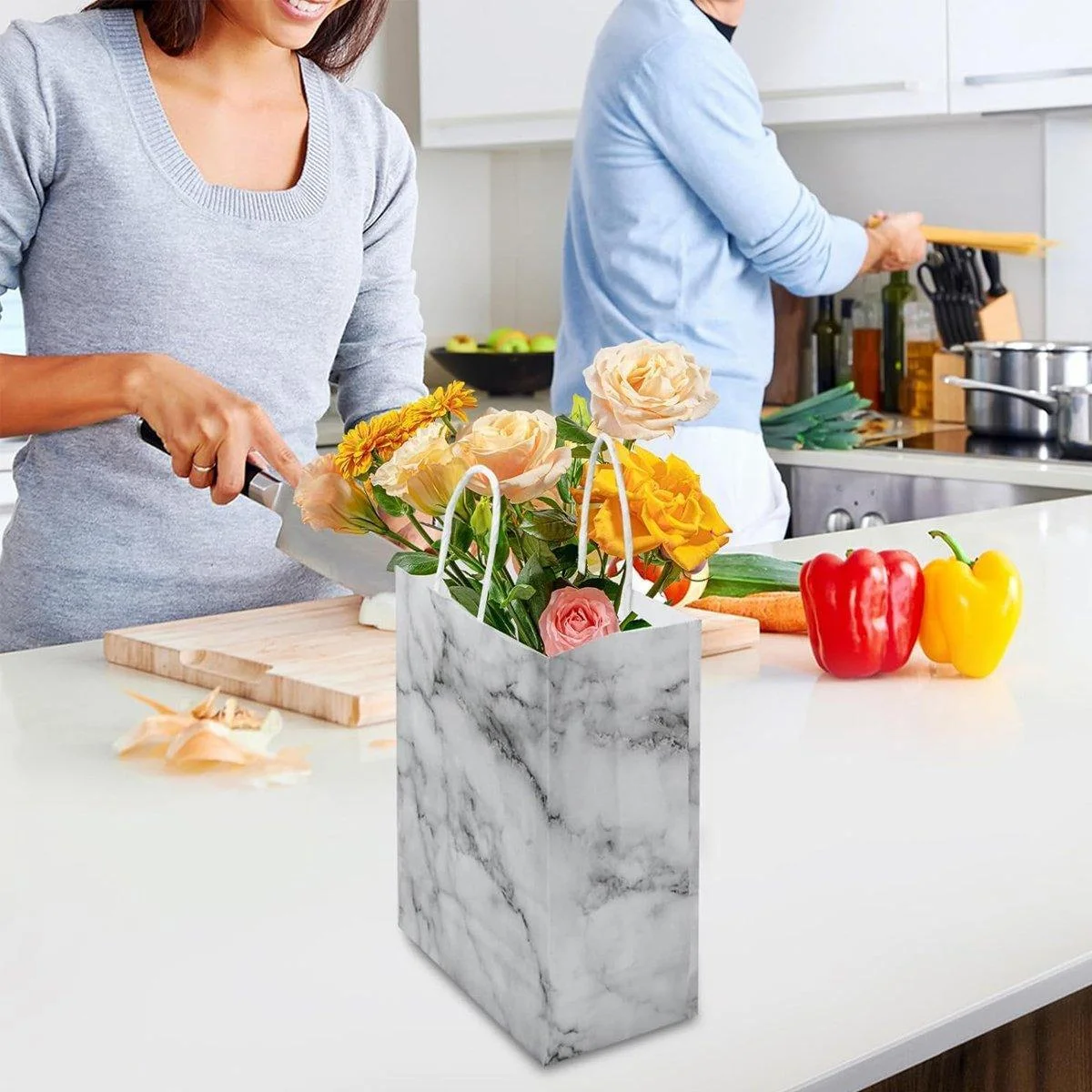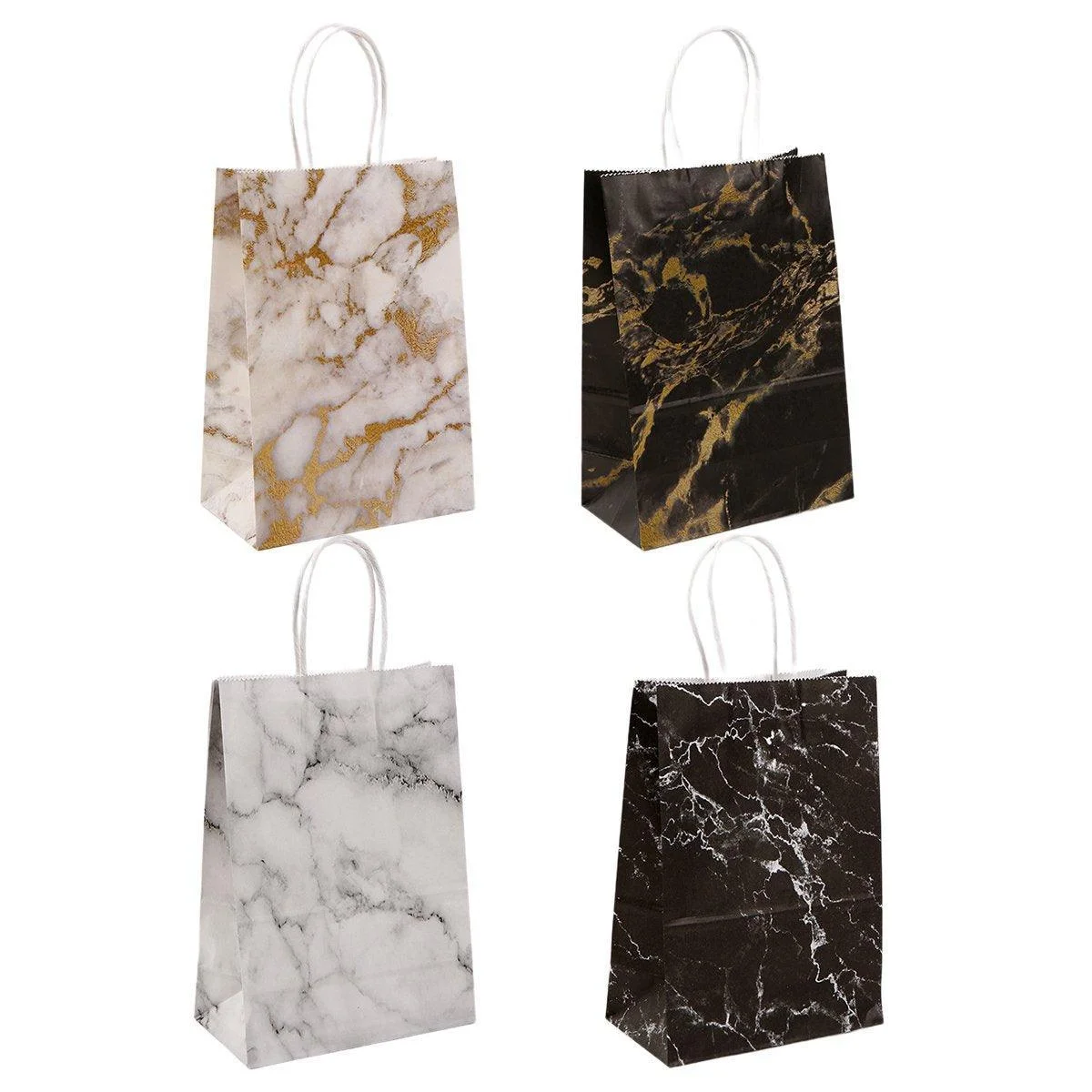 Add a touch of elegance to your gift-giving or shopping experience with these Marble Pattern Paper Bags. Crafted from high-quality paper, these bags feature a sleek marble design that exudes sophistication and style. With their sturdy construction and comfortable handles, these bags are perfect for a variety of occasions, including parties, weddings, birthdays, and everyday use. Available in four different sizes, they cater to all your packaging needs, whether you're carrying small treats or larger gifts. Make every present feel extra special with these luxurious, reusable paper bags.