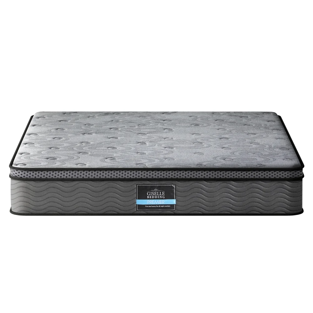 The Giselle Bedding Euro Top Mattress from the Reverie Series offers comfort and support with its 26cm thick profile. Featuring a Euro Top design, this mattress provides a plush, cushion-like surface while maintaining medium-firm support for optimal spinal alignment. The 280g knitted fabric cover is soft and breathable, promoting airflow and ensuring a cool and restful sleep. Designed with an independent coil system and pocket springs, this mattress minimizes motion transfer, allowing for uninterrupted sleep throughout the night.