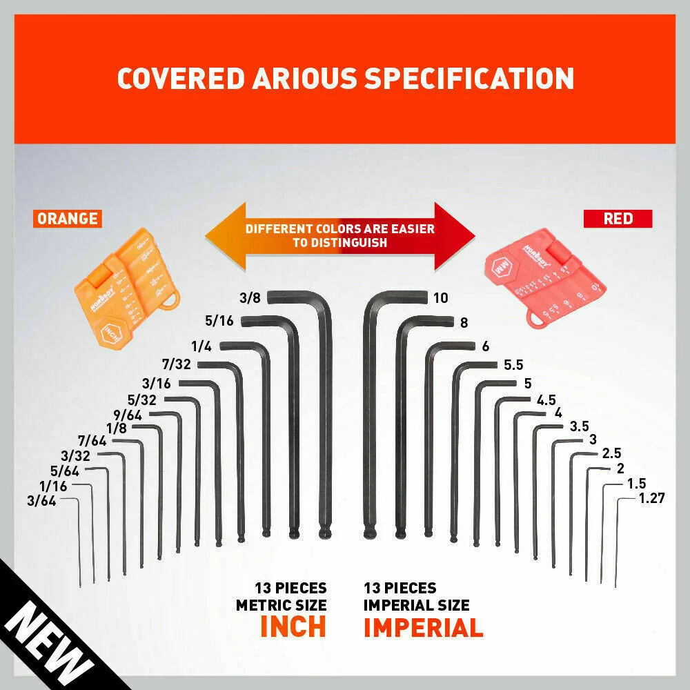 13-pc. (MM): 1.27mm 1.5mm 2mm 2.5mm 3mm 3.5mm 4mm 4.5mm 5mm 5.5mm 6mm 8mm 10mm