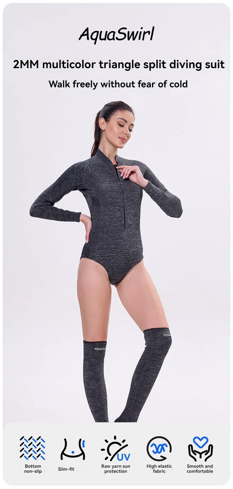 Comfort upgrade, fun: The all-in-one design completely solves the embarrassment of hemming and shifting the top during underwater activities. Extended non-slip stockings not only protect your feet, but also make the overall look vibrant and dynamic.