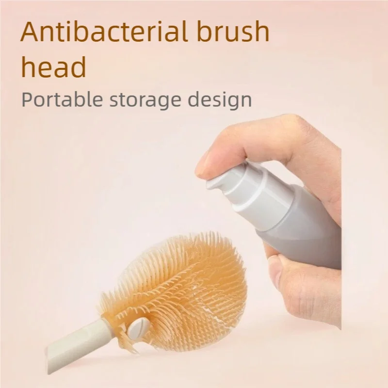 This set features a high-density bristle brush, engineered for exceptional elasticity and durability. The bristles are designed not to shed, preventing dirt and grime from accumulating and ensuring a spotless clean without residue. The brush head is easily detachable for deep cleaning and replacement, adapting to various cleaning needs. Its flexible design allows for a 90-degree fold, reaching every corner of bottles and nipples, including bottle bottoms, screw threads, and curved surfaces, for a comprehensive 360-degree clean. With an upgraded 600-bristle count, this brush offers a more thorough cleaning effect compared to standard brushes.