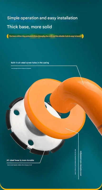 Enhance safety and stability in any environment with our Heavy-Duty Anti-Slip Safety Grab Bar. Expertly engineered with a dual-tube design, this grab bar combines a high-pressure resistant stainless steel inner core with a comfortable, antibacterial nylon outer layer. The surface features raised, non-slip particles to ensure a secure grip, even with wet hands. For added safety in the dark, it incorporates two luminous rings that absorb light during the day and glow at night for up to 72 hours, providing a clear guide in low-light conditions. With a strong load-bearing capacity of up to 300kg, this durable and easy-to-install grab bar is an essential safety addition for bathrooms, hallways, stairwells, and public facilities.