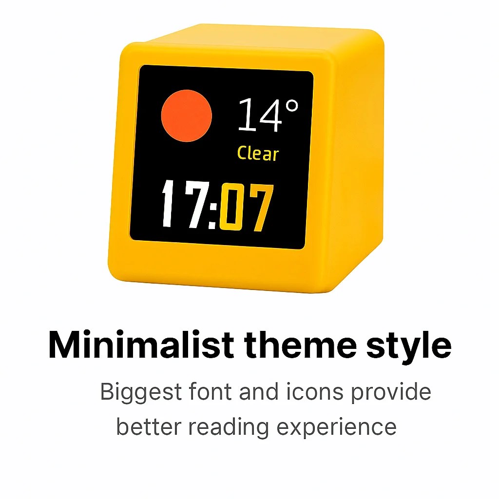 Elevate your desktop with this compact and cute smart weather station clock. This must-have gadget connects to your 2.4G Wi-Fi network to fetch real-time weather and time information from the internet, displaying it clearly on a vibrant HD IPS screen. With multiple themes, a 3-day weather forecast, and a customizable electronic photo album that supports your favorite GIF animations, it adds a fun and personal touch to any space. Its minimalist design, powerful CPU for smooth animation playback, and user-friendly interface that requires no mobile app for setup make it a versatile and essential desktop companion.
