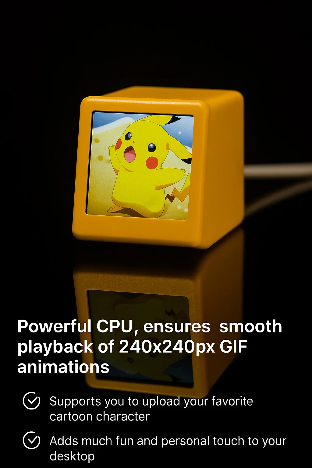 This product does not contain a lithium battery. A 2.4GHz Wi-Fi network and a USB power source (adapter not included) are required for operation. This is a smart gadget and not a toy intended for very young children. Configuration is done via a web browser on iOS, Android, Windows, or Linux systems. The powerful CPU ensures smooth playback of 240x240px GIF animations.