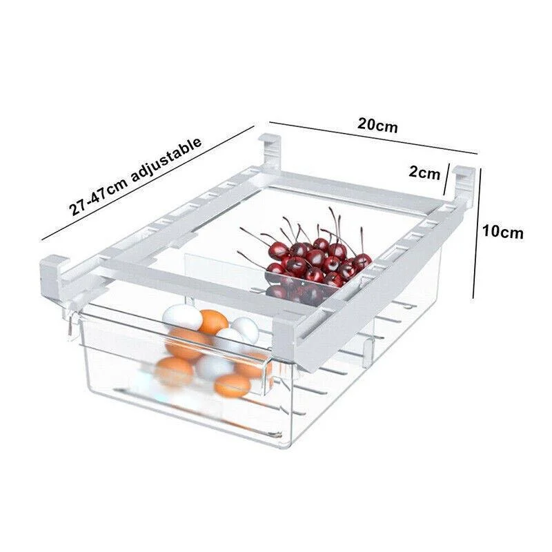 The adjustable rails (27–47cm) allow for a universal fit in most standard fridges, while the transparent design makes it easy to identify stored items at a glance. Whether you're meal prepping or simply tidying up, this organiser brings visibility, convenience, and efficiency to your kitchen.