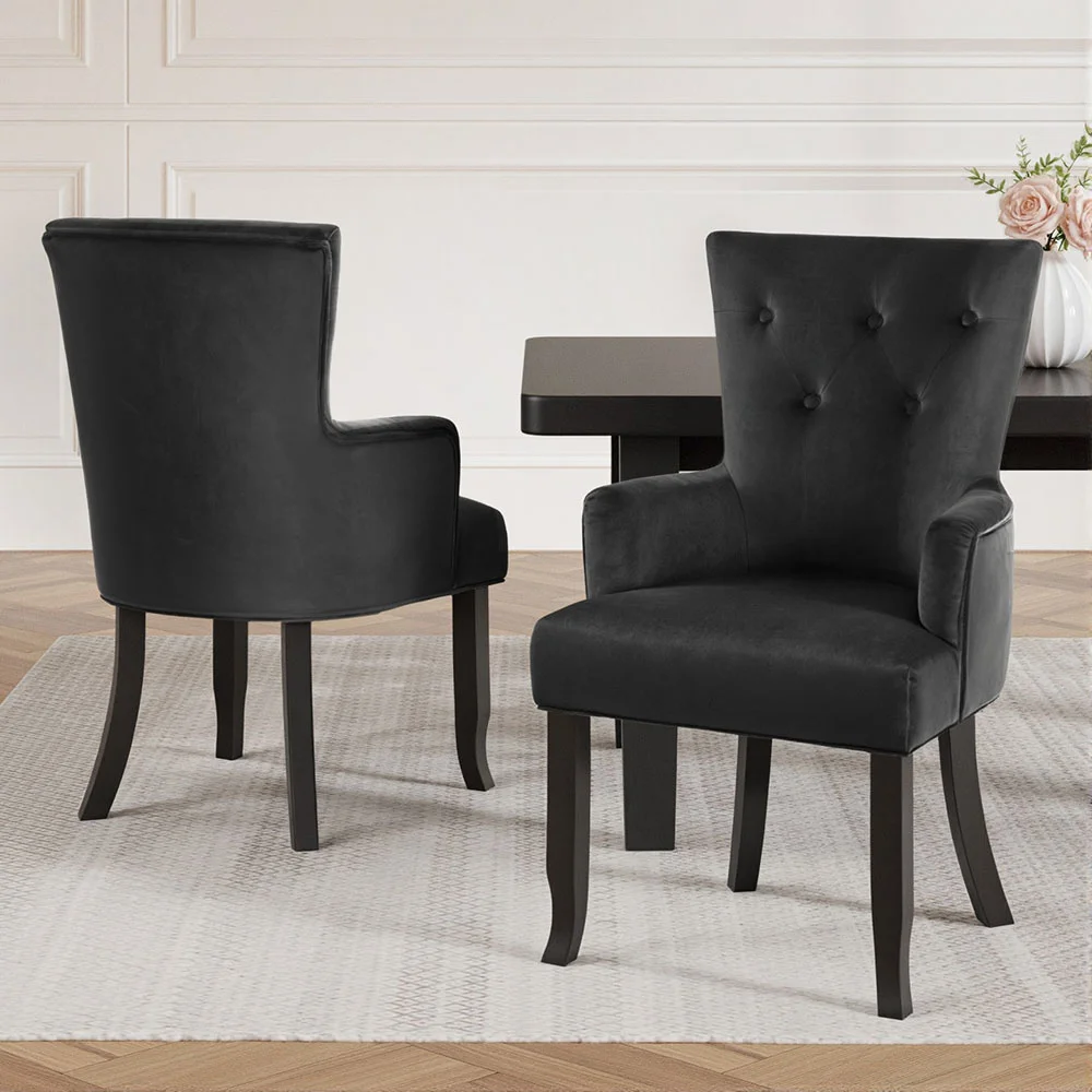 The tufted button design of the back rest, and the iconic curved back legs and turned front legs all add to the overall charisma of this classic chair.