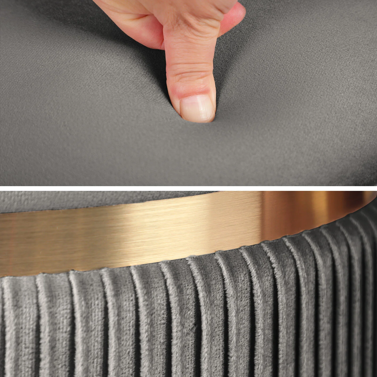 La Bella 2 Set Side Table Storage Ottoman - Velvet Padded Stool Vanity Footstool REMI - Grey
