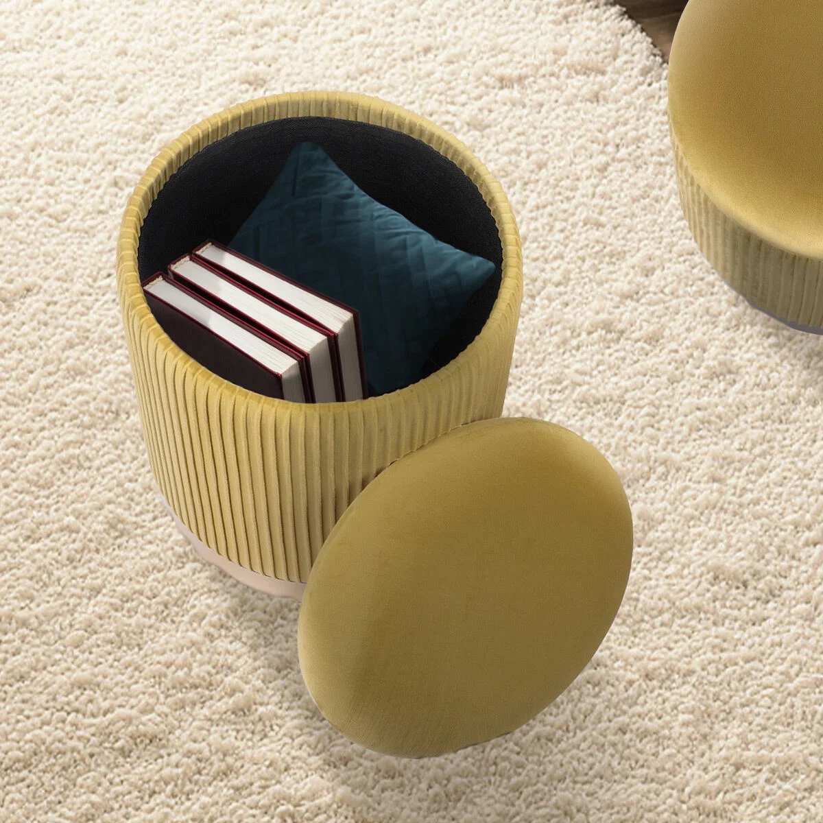 La Bella 2 Set Side Table Storage Ottoman - Velvet Stool MIRA - Mustard