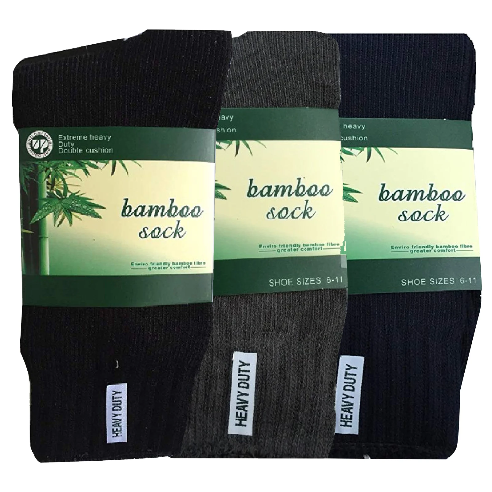 3 Pairs BAMBOO SOCKS Mens Heavy Duty Premium Thick Work Socks Cushion BULK - Black - 6-11