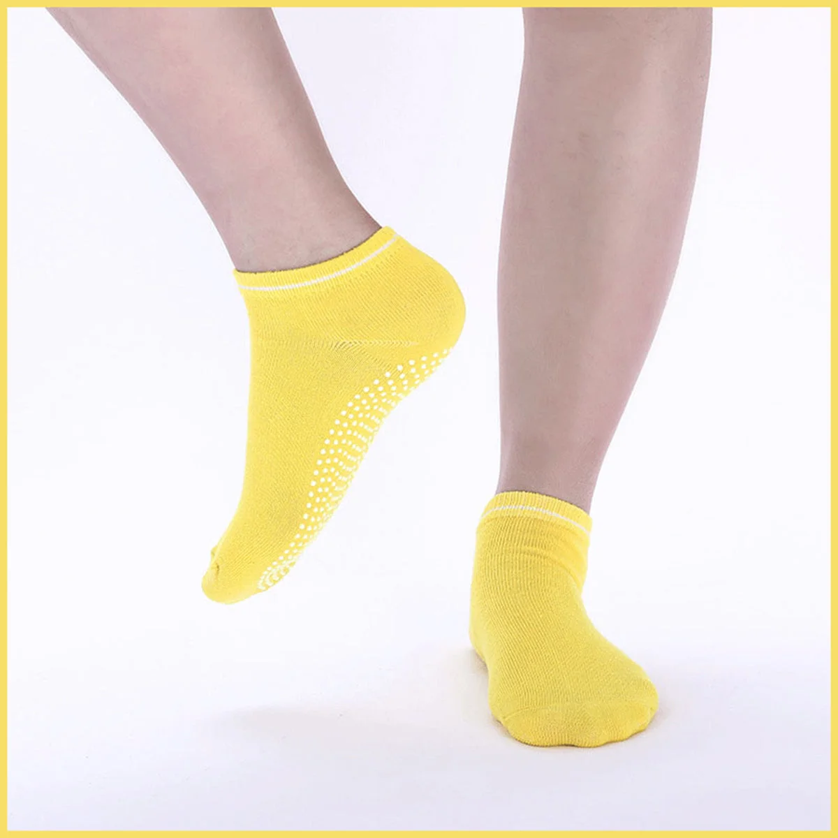 Step up your fitness game with our specially designed 36 pairs of Ladies Women Sports Cotton Rich Pilates Yoga Non-Slip Grip Socks. Perfectly tailored for active individuals seeking enhanced grip during workouts, these socks deliver both comfort and style. The fusion of a soft cotton-rich blend ensures your feet breathe and stay snug, allowing you to concentrate on perfecting your moves without distractions.