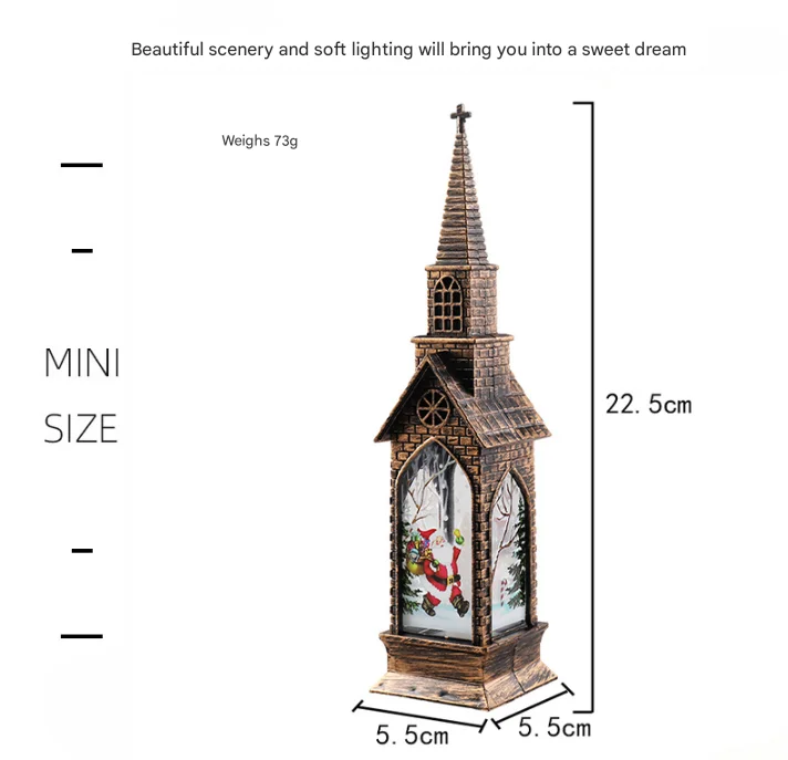 Capture the timeless spirit of Christmas with this beautifully crafted vintage-style church lantern. Inside, a classic holiday scene glows with a warm, inviting light, creating a magical atmosphere in any room. It's the perfect decorative accent for your mantel, windowsill, or holiday table centerpiece.
